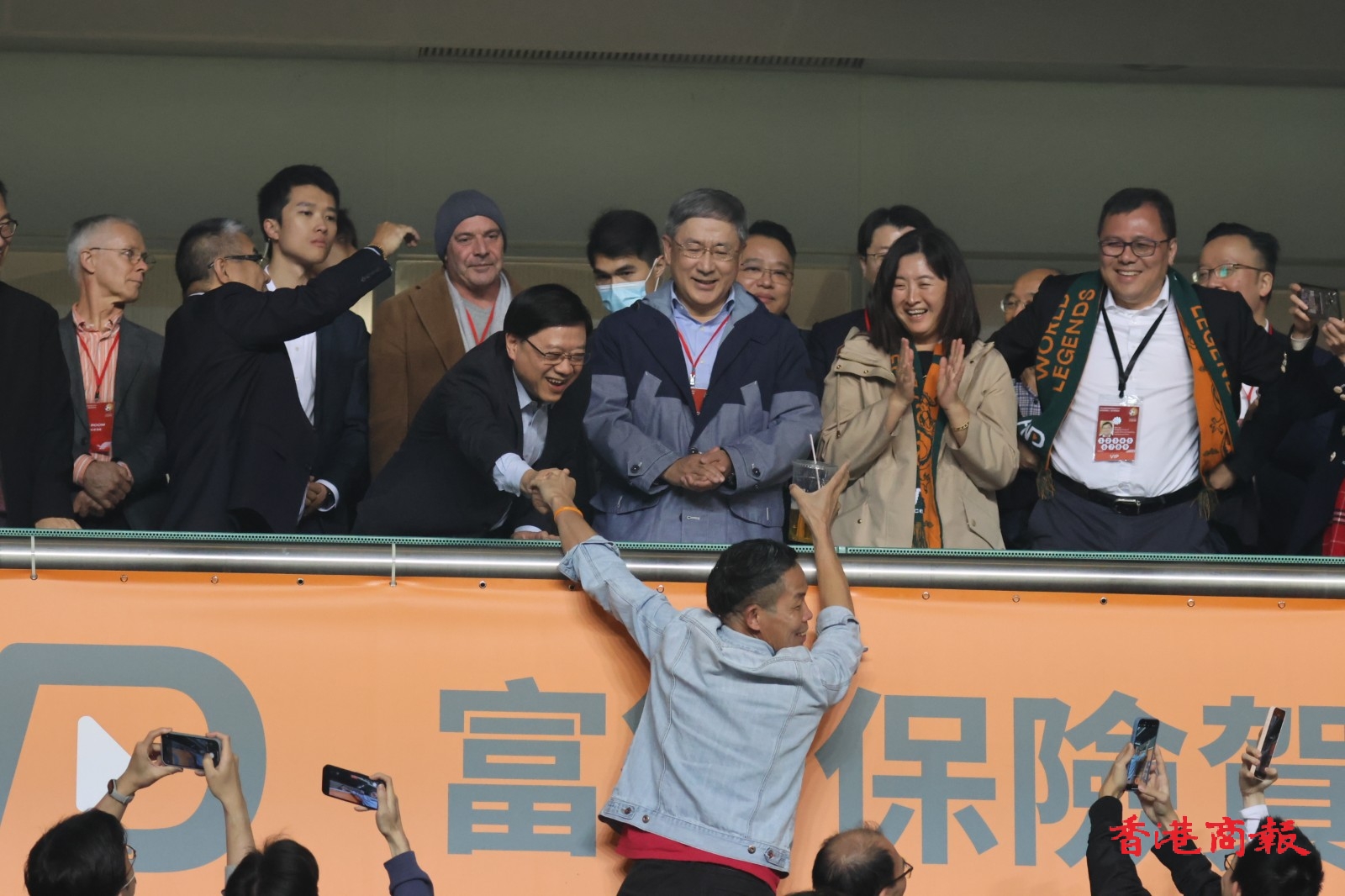 周二(13日)在香港大球場上演的賀歲盃,有李華度、大衛韋拿各自梅開二度的世界明星隊,最終以7比3擊敗香港明星隊,賽事吸引逾2萬人進場,場面熱鬧,特首李家超與文化及體育局局長楊潤雄都是座上客。