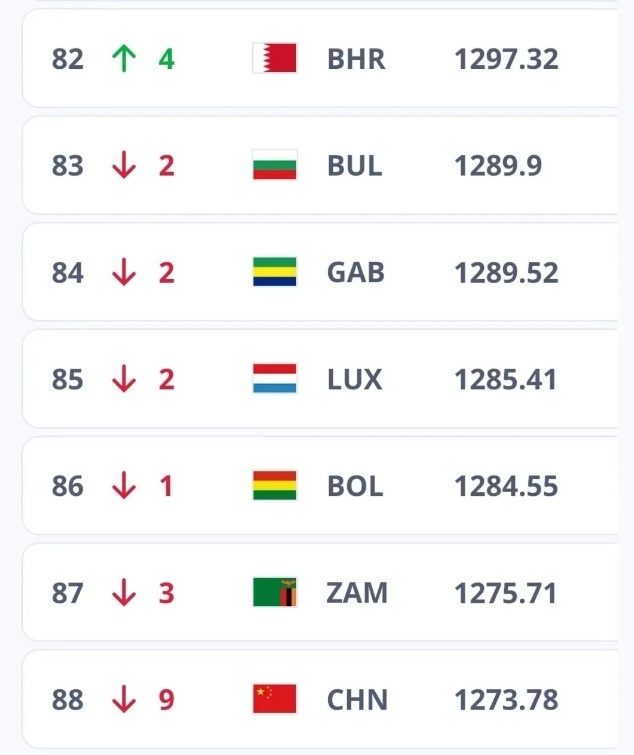 北京時間2月15日,國際足聯發布了最新一期男足國家隊世界排名。中國隊較上期下降9位,排名跌至第88。亞洲盃的糟糕戰績是導致國足排名下滑的主要原因。