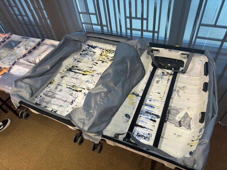 將軍澳反三合會行動組呂朗澄督察今日(21日)表示,警方與海關人員展開聯合反毒品行動,經情報分析發現有黑社會分子在香港招募年青人,以免費酒店和住宿作招徠,吸引到歐洲免費旅行,指示他們到歐洲提取毒品運返本港。經調查後昨日在機場截查一名25歲由瑞士入境香港的女子,在其行李箱中搜出個人護理產品和食物,包括沐浴露、護髮素、咖啡粉、奶粉、零食和書本,海關人員對該批食物和護膚品進行檢驗,發現內裏藏有可卡因,檢查行李箱時發現夾層中藏有14包可卡因,行動中共檢獲約8公斤可卡因,市值約810萬元。