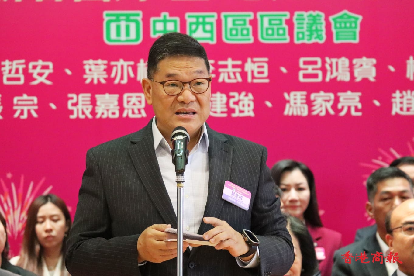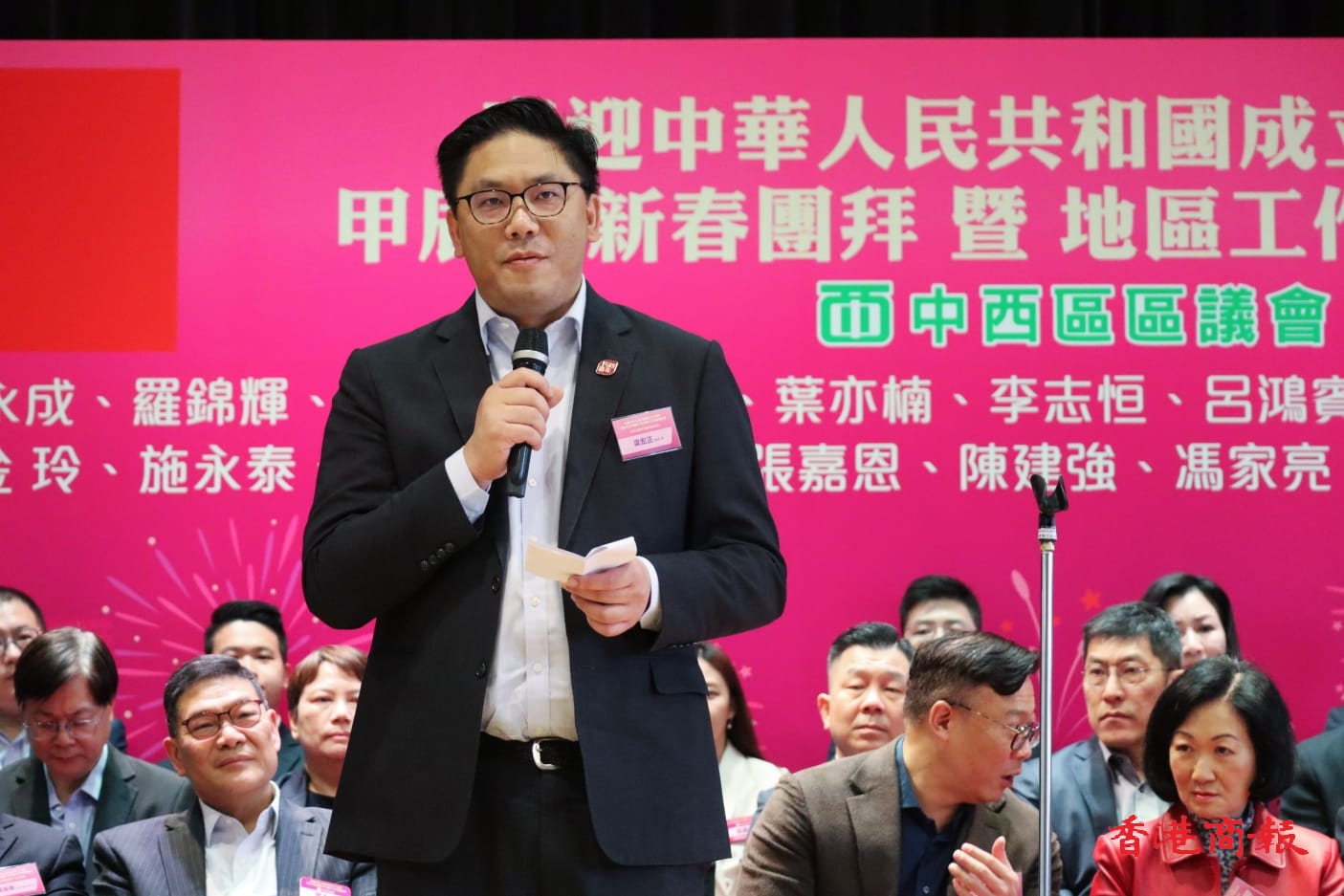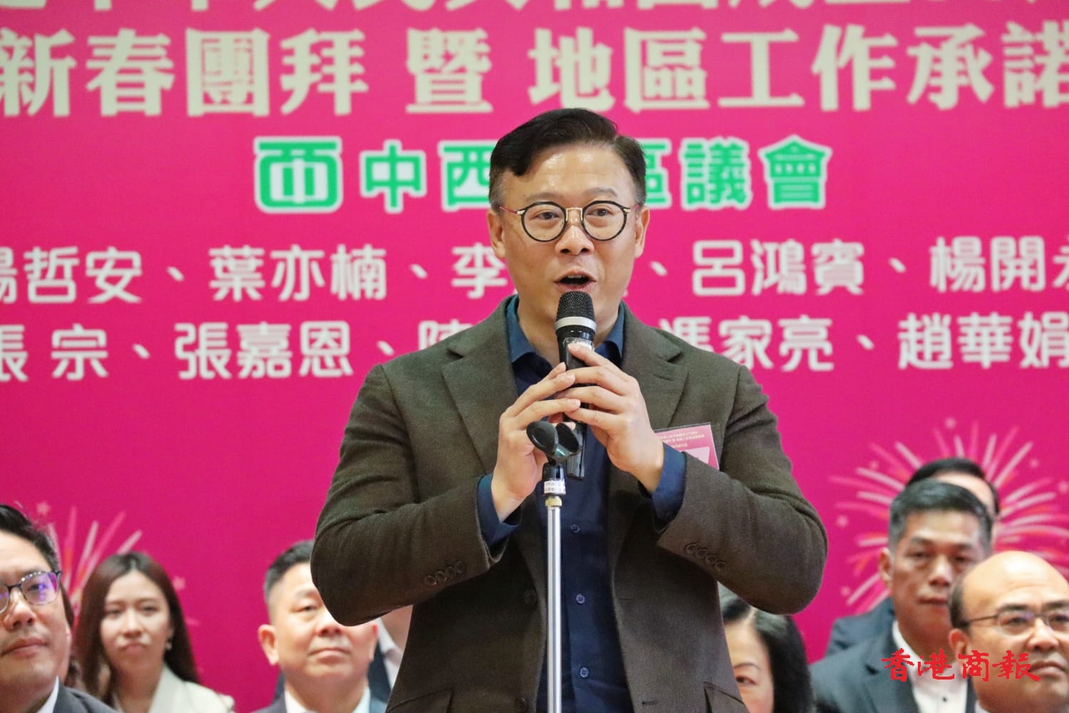 張國鈞致辭表示,自己在中西區當了8年區議員,今日全體區議員可以聚首一堂,但回想當年的區議會想來一個大合照都非常困難,隨着基本法第23條立法工作進入最後階段,希望香港今年可以專心拼經濟拼民生,經濟騰飛。