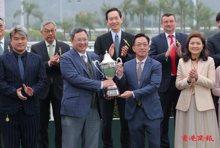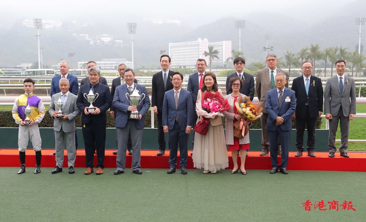 五場三班1200米的鄉議局盃,排三檔起步的「樂滿貫」出閘主動擺前走,直路越跑越有,最終以個多馬位之先擊敗亞軍馬「電子傳奇」,「特別美麗」後追第三。「樂滿貫」馬主陸倩芳是內地房地產雅居樂的創辦人之一,不過她今日未有進場,由友人吳嵩拉頭馬兼領獎。馬會主席利子厚、行政總裁應家柏、一眾高層以及新界鄉議局主席劉業強賽後一齊出席頒獎儀式。