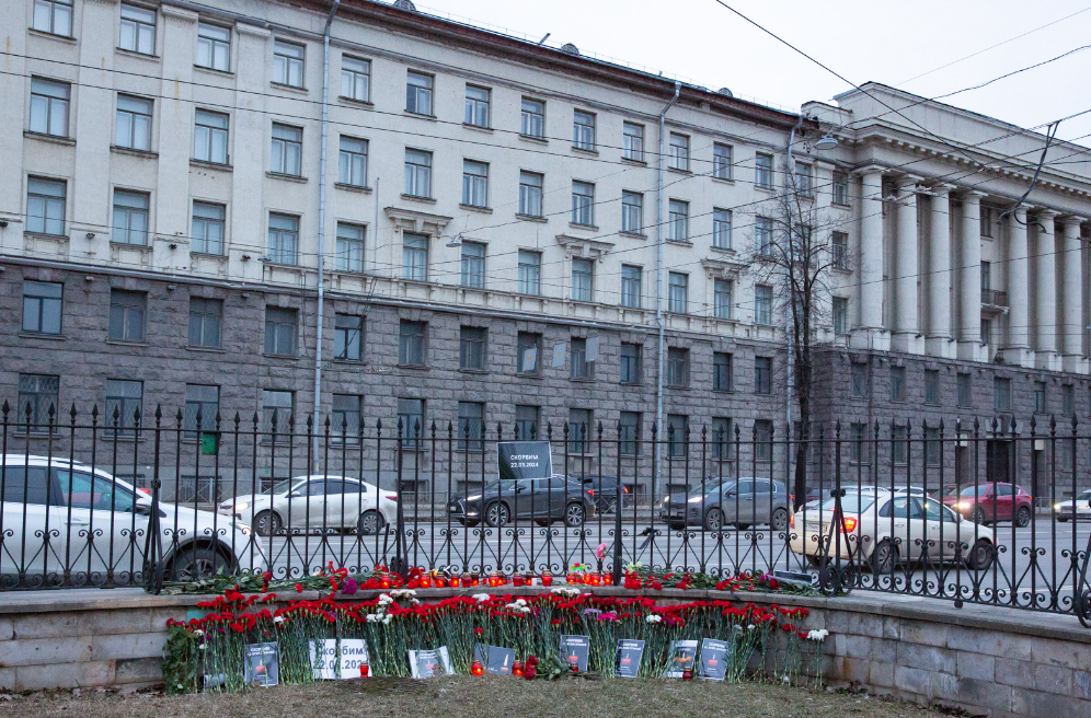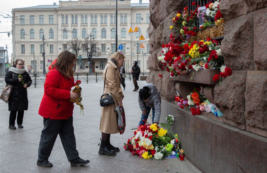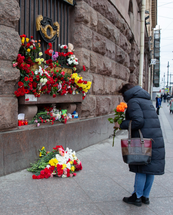 3月23日,在俄羅斯聖彼得堡,市民獻花悼念莫斯科近郊恐襲事件遇難者。新華社