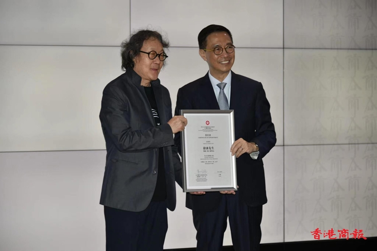 楊潤雄致辭時表示,徐冰是公認最有創造力及影響力的中國當代藝術家之一,其藝術作品不但體現傳統文化的美,而且結合當代藝術,為中華文化在國際藝術界上的推廣作出重要的貢獻。香港藝術館亦收藏了徐冰其中一件最廣為人知的藝術作品《天書》,作品結合古典與現代的元素,超越文化的界限,好比香港這個東西文化的交匯點,蘊含獨特的內涵。他期望憑藉徐冰豐富的國際網絡,以及他在教學及文化交流的經驗,能協助本地年輕藝術人才前往內地或海外進行實習及藝術交流,擴闊他們在文化藝術領域的視野及發展。徐冰的藝術理念與藝術形式,將有助啟發本地年青藝術家的創意思維,善用香港軟實力,共同說好中國及香港故事。