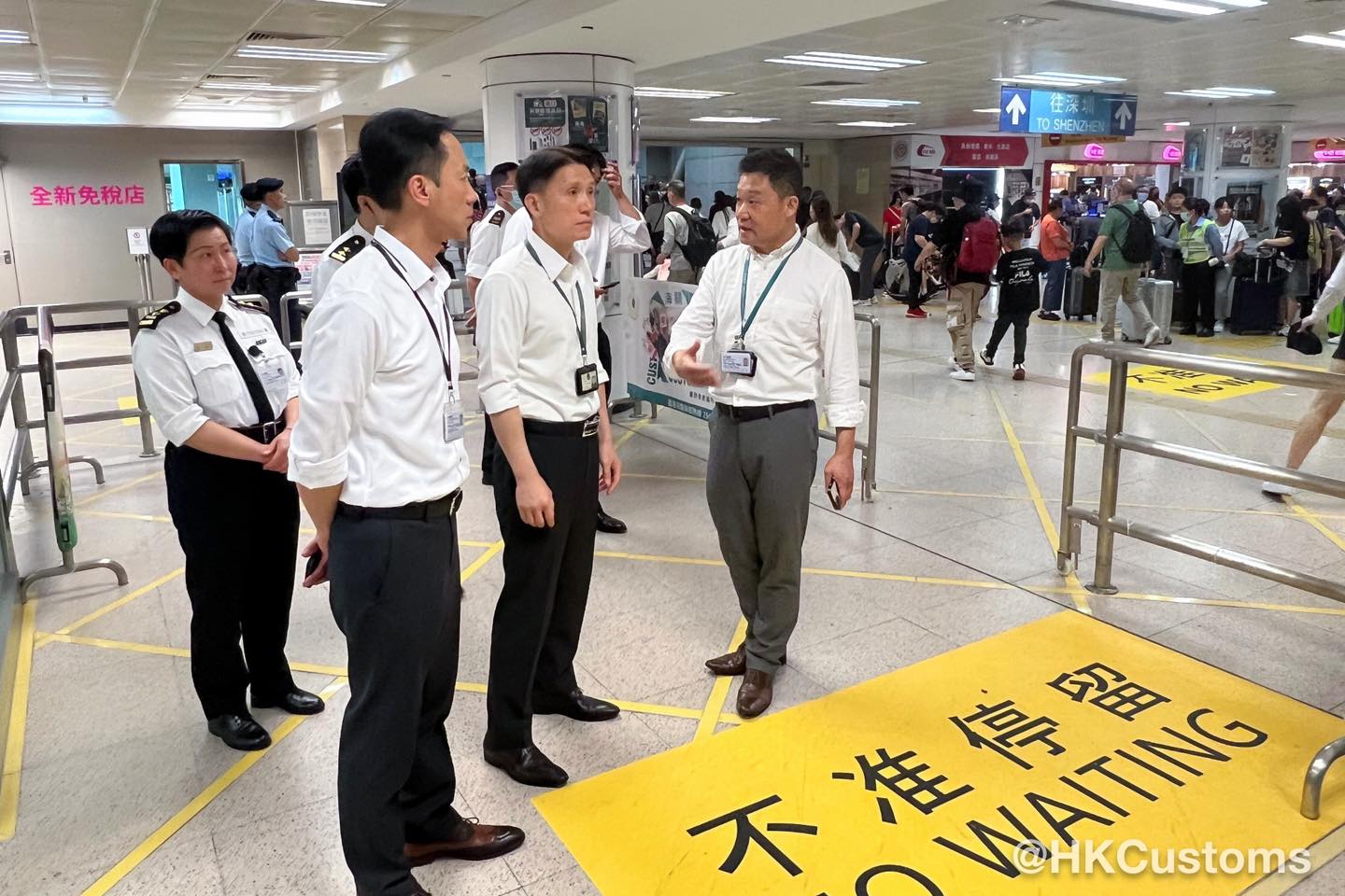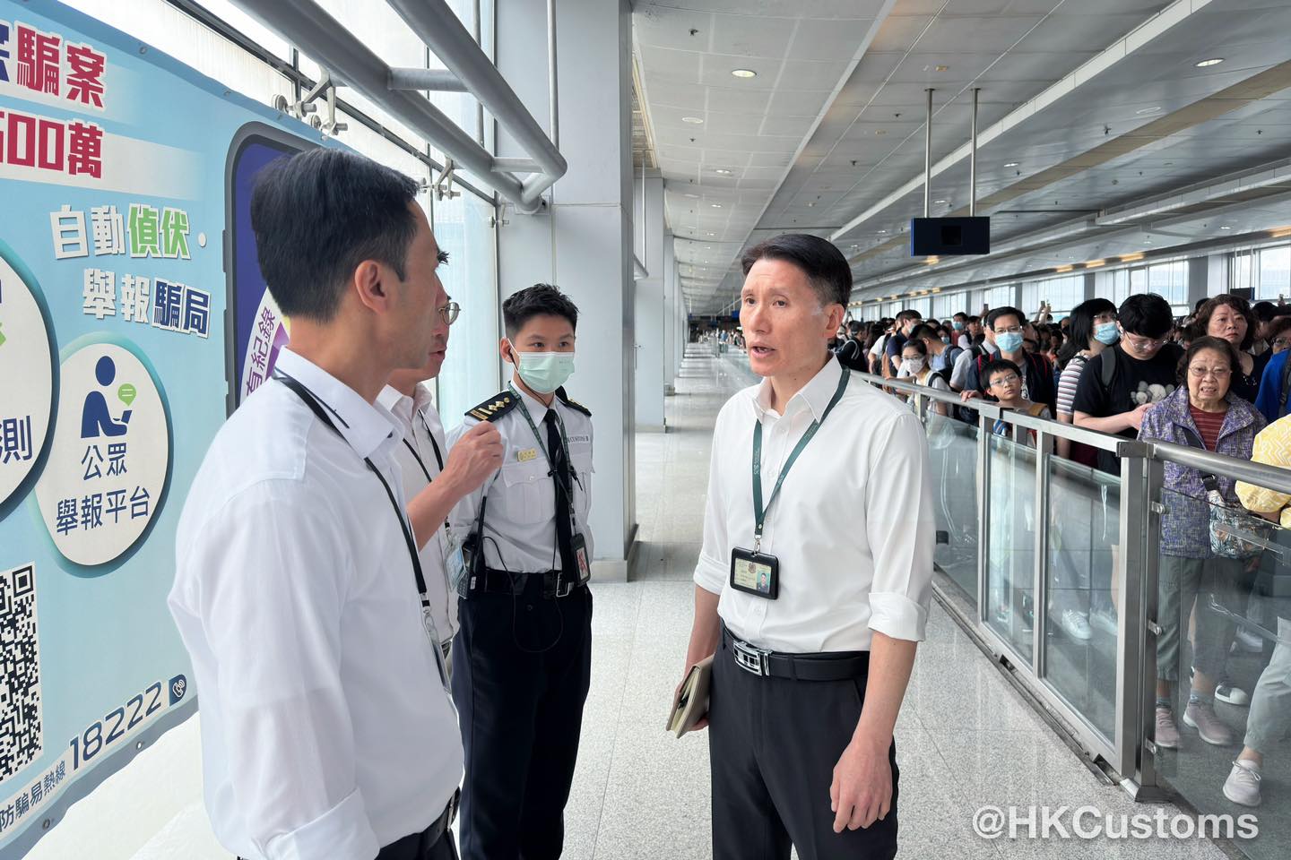 海關指,副關長(管制及執法)胡偉軍與一眾口岸指揮官到港珠澳大橋、羅湖及落馬洲支線管制站視察口岸通關情況,並為緊守崗位的前線海關人員打氣。海關與各口岸相關部門已啟動跨部門聯合指揮中心,正密切監察各陸路邊境管制站人流及車流情況,全力確保市民及旅客通關暢順。