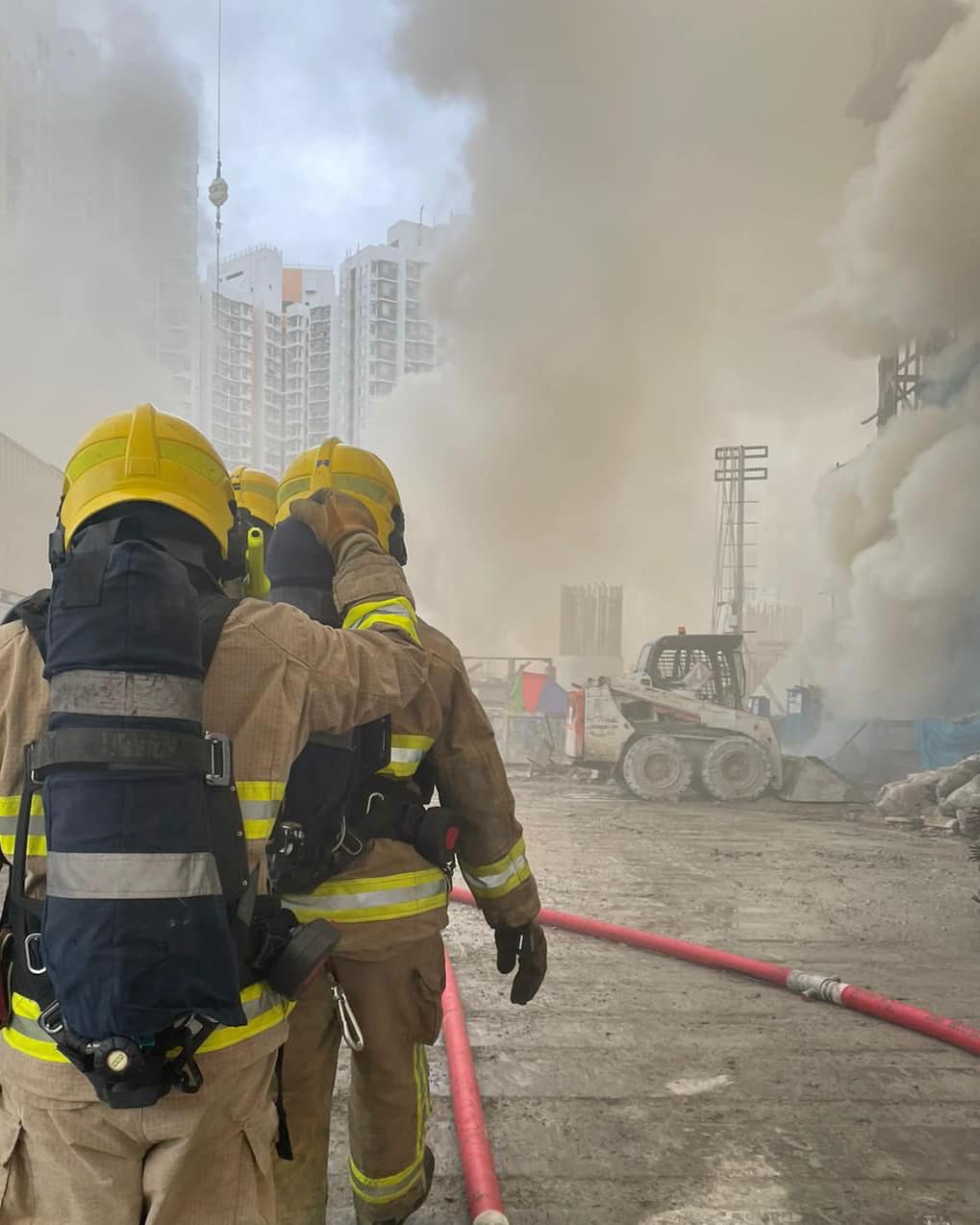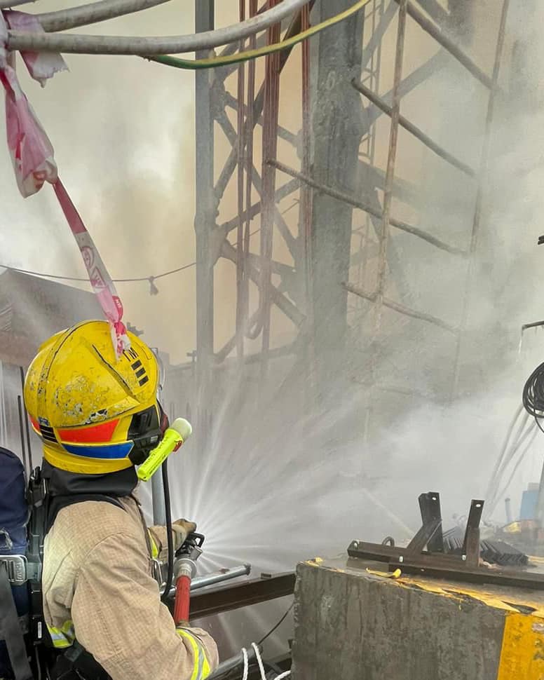 洪水橋洪雅路一個地盤9日下午發生3級火警,消防員正全力灌救。圖:消防處社交媒體