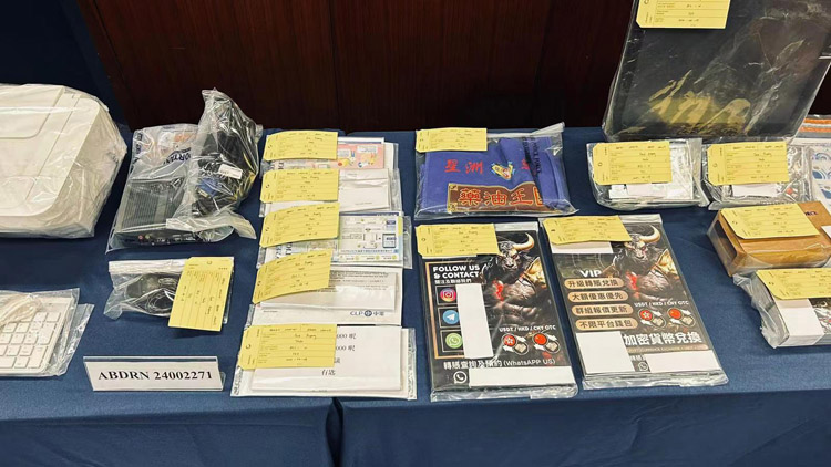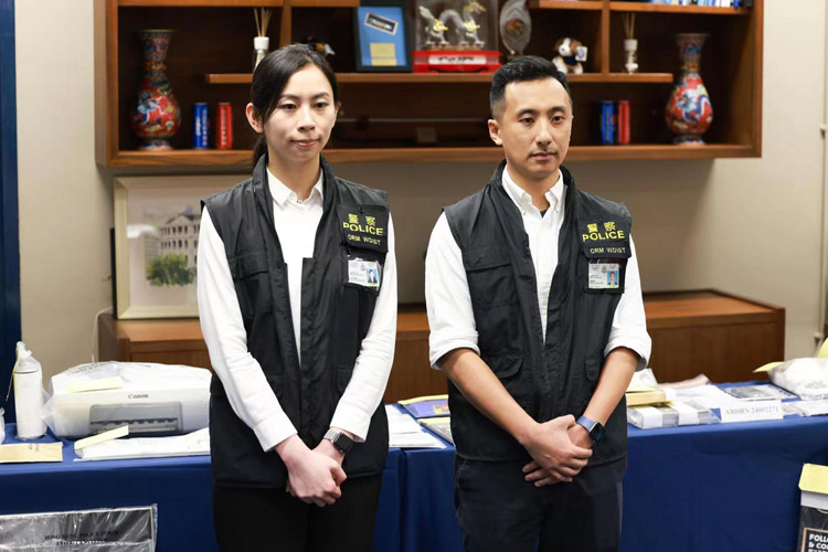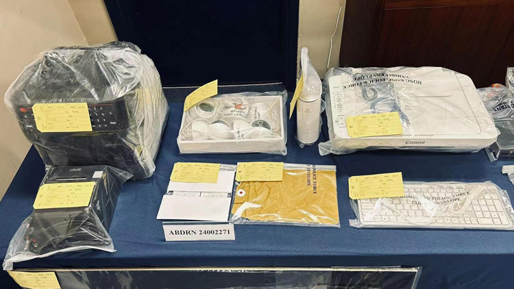 在過去一星期,警方拘捕5男1女,分別是骨幹成員和傀儡戶口持有人,檢獲兩張傀儡戶口持有人銀行卡,並尖沙咀一單位檢獲電腦、點鈔機、兌換加密貨幣收據、宣傳易拉架、海報和卡片等證物。疑犯現獲准保釋候查,調查仍然繼續,不排除再有進一步拘捕行動。(記者區天海)