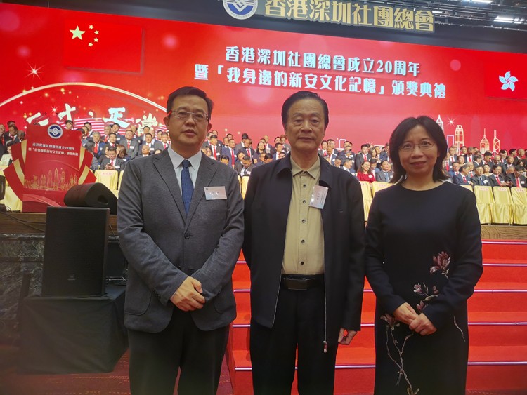 香港商報副總編輯王軍(左)、深圳市民間文藝家協會名譽主席、文史研究學者楊宏海(中)、深圳市史志辦地方志處處長周華赴港出席香港「我身邊的新安文化記憶」頒獎典禮。