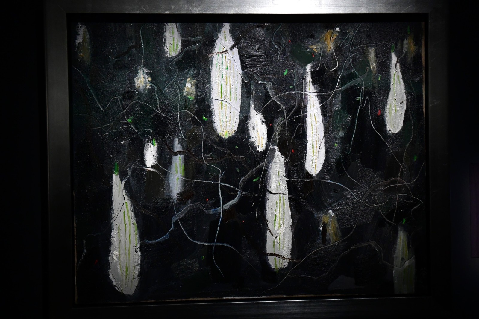 展品《巢》是吳冠中2010年離世前創作,亦是他捐贈的4張遺作之一,黑色的線條亂中有序。鍾館長認為從中可見吳冠中在黑色下過一番苦功:「黑色是視覺衝擊最強烈的顏色,故此吳氏主張運用黑色時畫面要有架構,才不會散漫模糊,要有適當的空隙,才能透氣透亮。《巢》是他人生的歸程創作,風格更自由奔放,抽象並大量運用黑色。我覺得畫作恍如鳥巢,暗喻了人生到了某一階段會出現的心境,同時也體現了一生勤奮創作的吳冠中,花費大半生融合中西藝術的探索結果。」