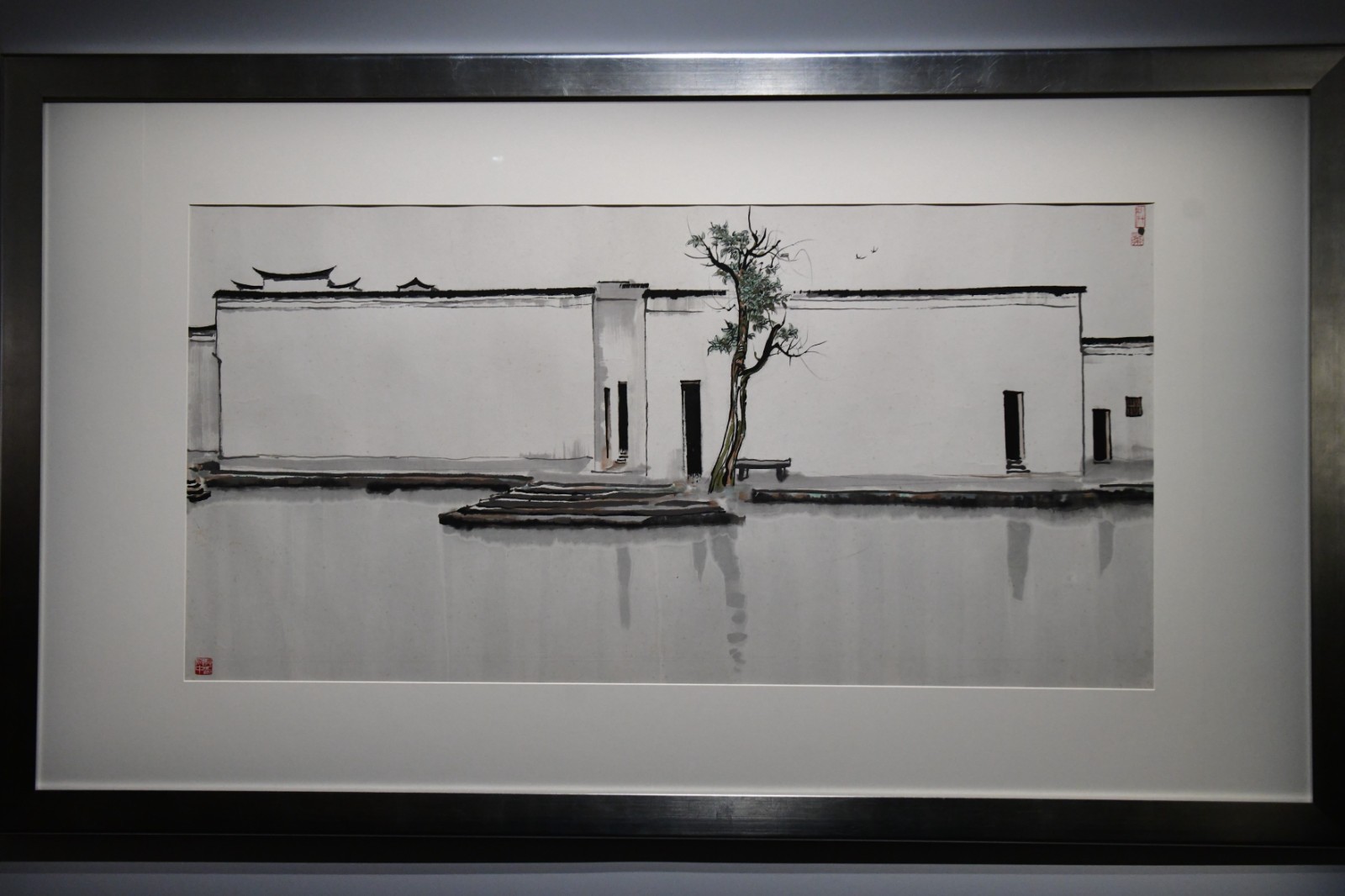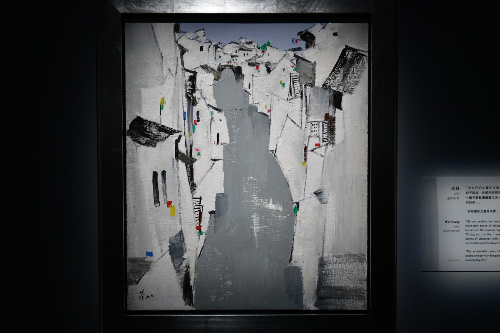 灰色作為黑與白之間的過渡色,令人覺得不起眼、甚至負面。吳冠中就認為灰色擁有無窮生命,甚至成為其經典作的「主角」。鍾館長表示:「一片黑瓦白牆的民居在淺灰色調的水鄉世界尤為奪目,如展品《水巷》,令人感覺柔和、舒服,並無強烈的對比感。畫中並加入了彩點,注入了活潑的節奏感。」吳氏早春時喜愛到江南地區寫生,在陰天時遠看尚未冒芽的枝椏和苗圃,呈現半透明的冷灰色,寧靜而和諧。灰色代表吳冠中對故鄉的思念,他的油畫是從江南的灰調起步,既是大膽創新的嘗試,也打破當時蘇聯畫家認為江南景色不宜作油畫的說法,對其獨特意義不言而喻。