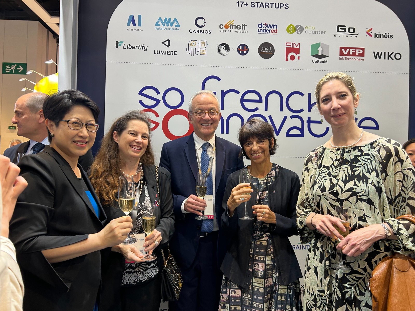 法國駐港總領事杜麗緹(Christile Drulhe)(圖右一)表示,今年是中法關係的重要里程碑,包括法中建交60周年、法國駐香港外貿顧問委員會聯合法國駐港澳總領事館、法國商務投資署與香港法國工商會共同發起「非常法國 非凡創新(So French So Innovative)」計劃面世10周年。此外,今年也是巴黎奧運年,這項盛事將於7月26日至8月11日舉行。