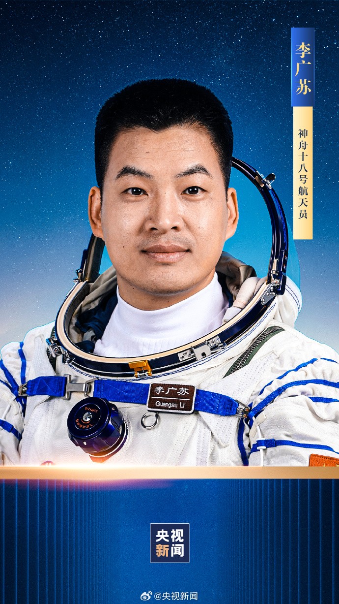 中國載人航天工程辦公室新聞發言人林西強表示,經任務總指揮部研究決定,瞄準北京時間4月25日20時59分發射神舟十八號載人飛船,飛行乘組由航天員葉光富、李聰、李廣蘇組成,葉光富擔任指令長。航天員葉光富執行過神舟十三號載人飛行任務,李聰和李廣蘇均為我國第三批航天員,都是首次執行飛行任務。3人均為「80後」。