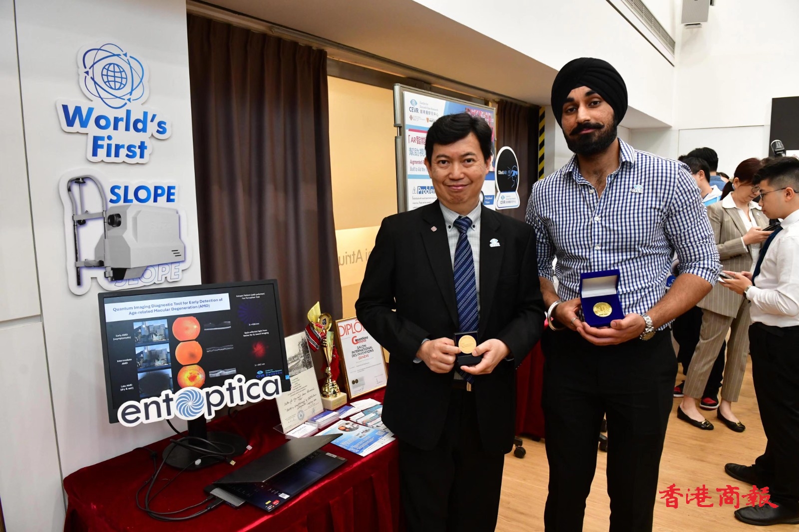 獲得評審團嘉許金獎、羅馬利亞錫比烏大學優異獎的「結構光學技術檢測黃斑病變」(SLOPE),則由理大眼科視光學院副顧問眼科視光師彭志剛發明。