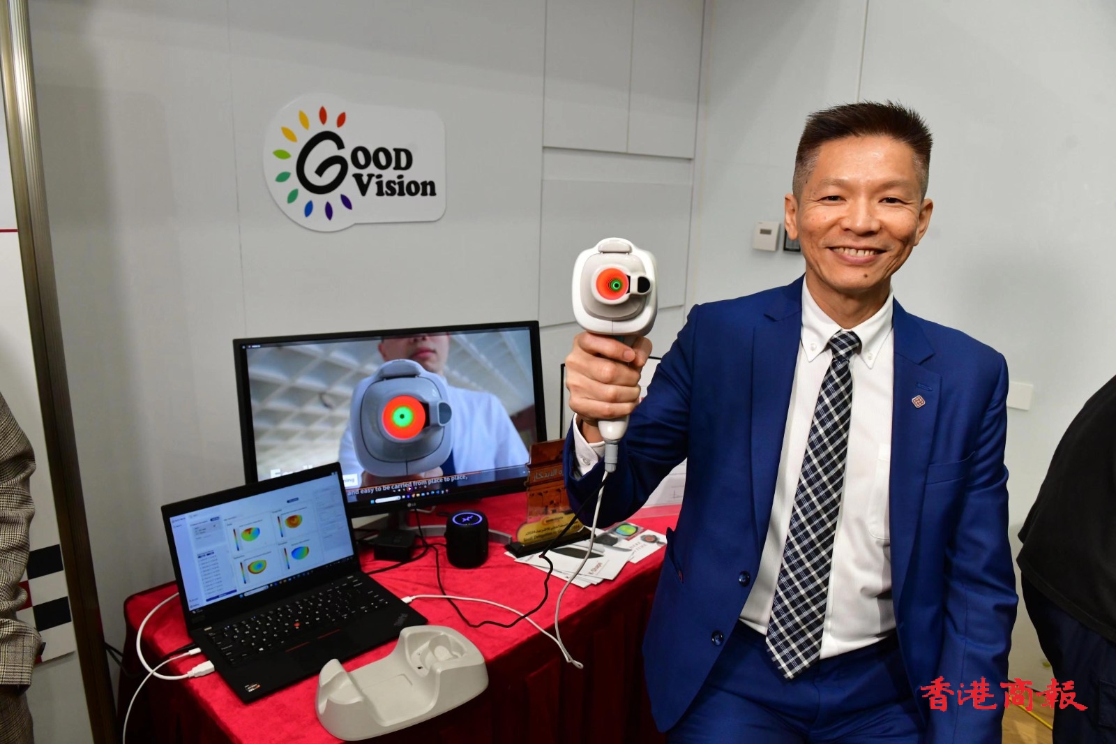 「全球首個便攜式高清角膜地圖儀K-Shape」由理大眼科視光學院學院主任及教授紀家樹發明。記者 崔俊良攝