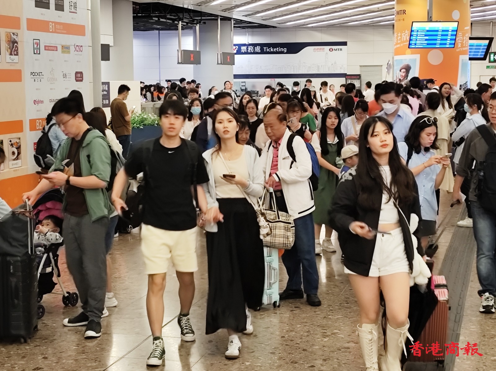 在西九龍高鐵站,抵港旅客絡繹不絕,除旅行團外,亦有不少或是三五知己、或是一家大小來港觀光購物,雖然天氣不像預期,但也無礙遊玩的興緻。