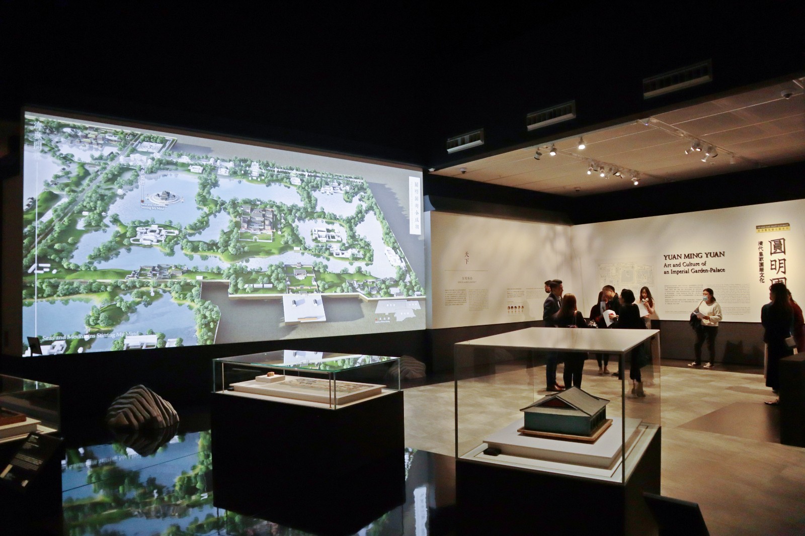 在展場入口處,透過投影方式呈現「圓明三園」的建成過程,及園中十多處如詩如畫的景致。(馮瀚文攝)