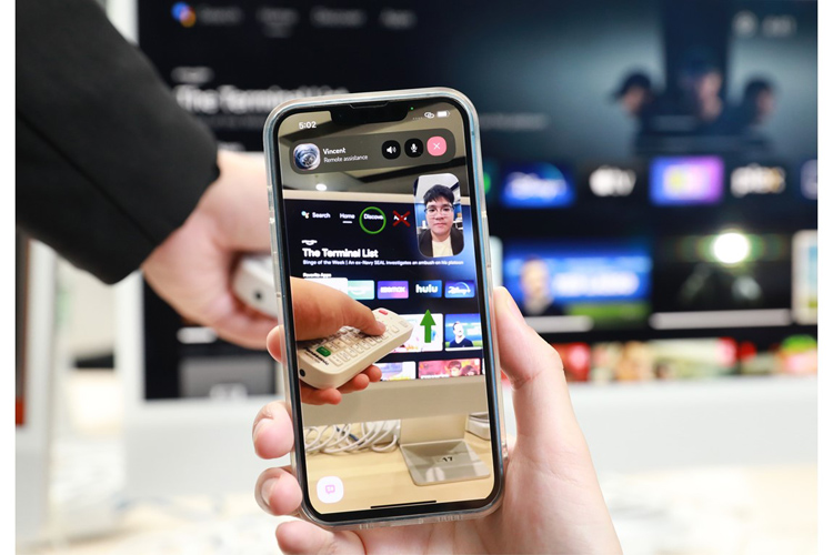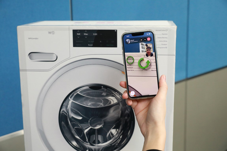 子女可使用「Dokodemo Call 隨意通」教長輩操作洗衣機。用家與教導者視像通話時,可先用鏡頭對準電器或電子產品,讓電話另一端的教導者清楚看到儀器,並能實時在視像畫面中添加不同顏色的AR圖示,如圓圈、旋轉符號等,方便用家即時在畫面中看到圖示,二人邊對話邊以AR圖示輔助說明。大會供圖