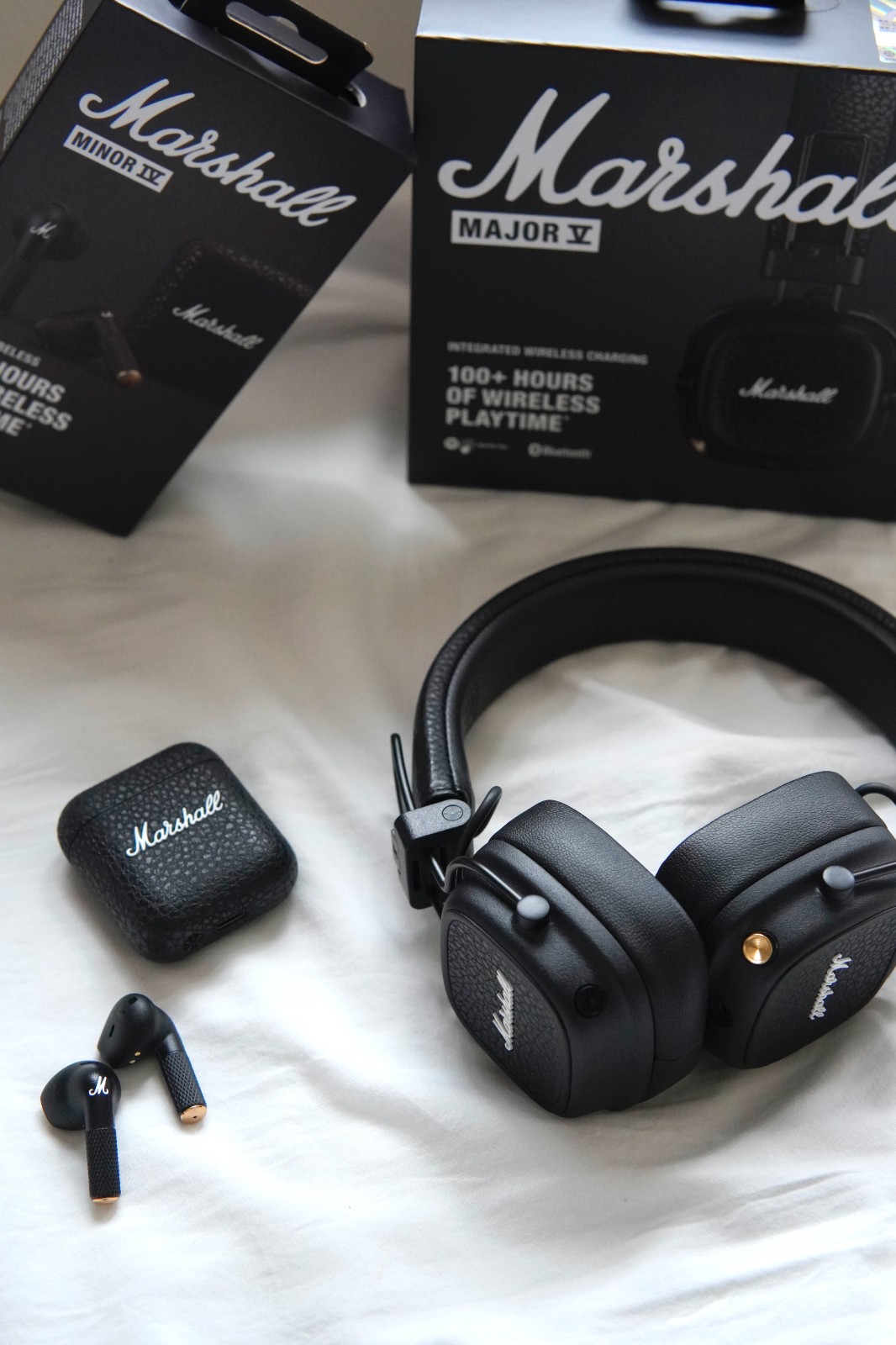 相信不少人使用無線藍牙耳機時都會遇到續航時間短、要經常充電的情況。Marshall將兩款經典產品換上新裝,分別為Major V頭戴式耳機和Minor IV無線耳機,產品均延續了經典的設計風格,前者舒適度提升,支援達100小時的藍牙播放;後者提供精巧設計和強勁音量。清晰的音質、舒適度和長續航時間,滿足音樂愛好者對無線頭戴式耳機和入門級真無線耳機的需求。