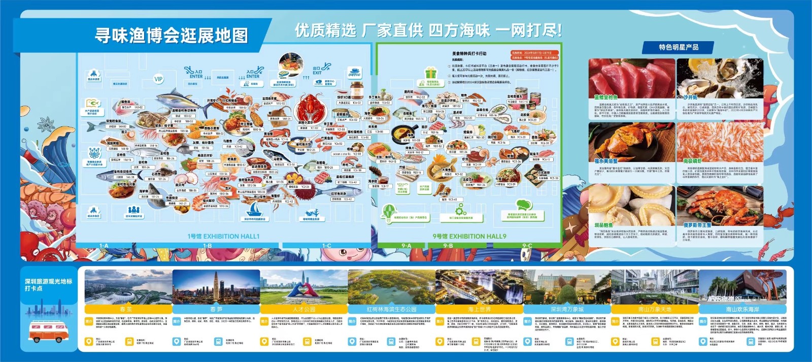 本屆漁博會由深圳港集團、中國農發集團、上海歌華展覽公司聯合主辦,主要包括展覽、論壇、配套活動三部分。展覽面積4.5萬平方米,設3展區12大板塊,1.2萬種水產品精彩亮相,匯聚24個國家和地區近500家展商企業。同期舉辦2場專業論壇及十餘場配套活動,新設的光明區分會場連續三晚舉辦「漁游光明 尋味圍岸」海鮮燒烤嘉年華系列活動,鹽田區分會場將召開深遠海養殖產業招商會。