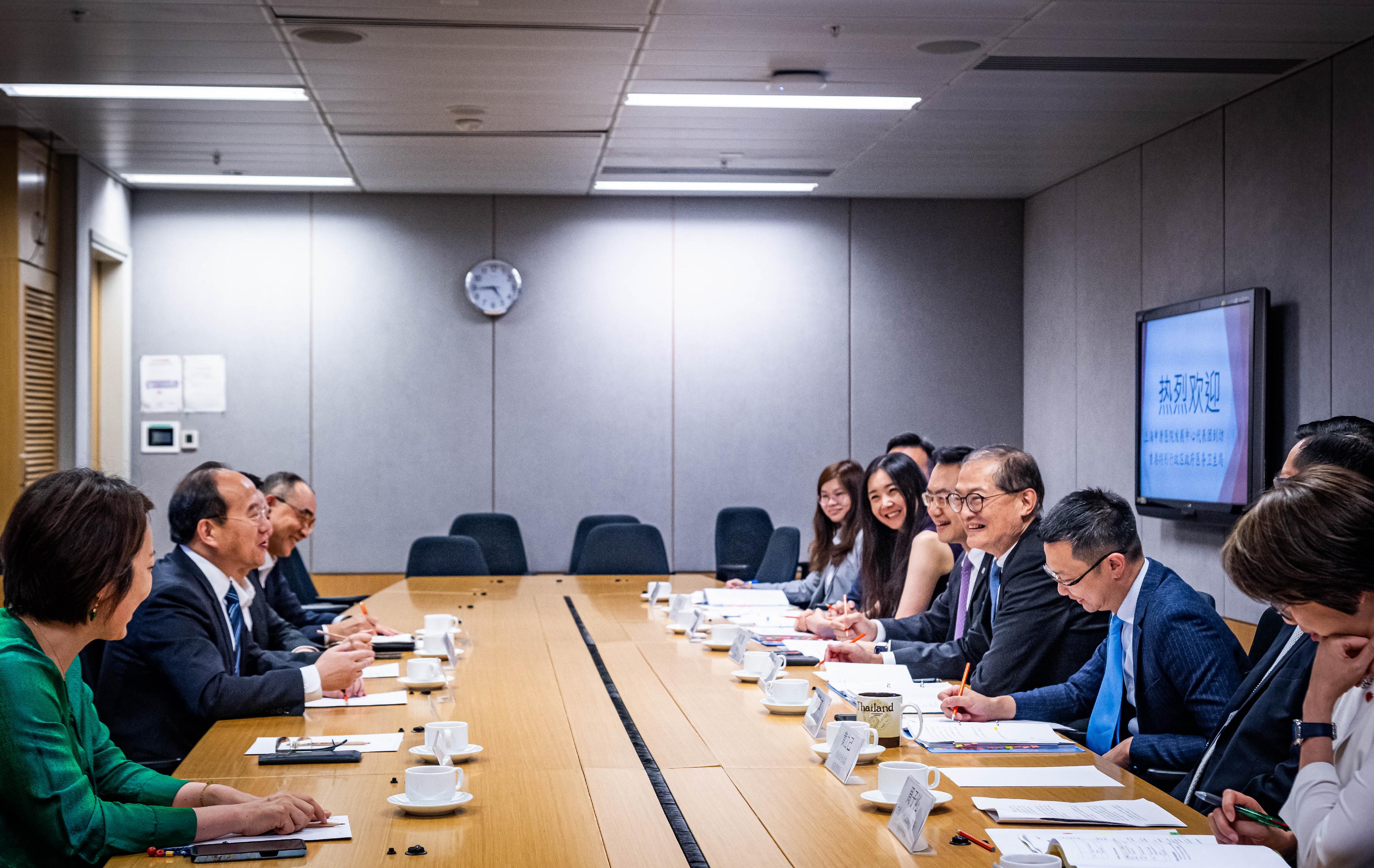 醫務衞生局局長盧寵茂教授(右四)今日與上海申康醫院發展中心副主任鄭寧(左二)率領的代表團舉行會議,探討加強醫療衞生領域的合作。衞生署署長林文健醫生(右五)亦有出席。圖源政府新聞處