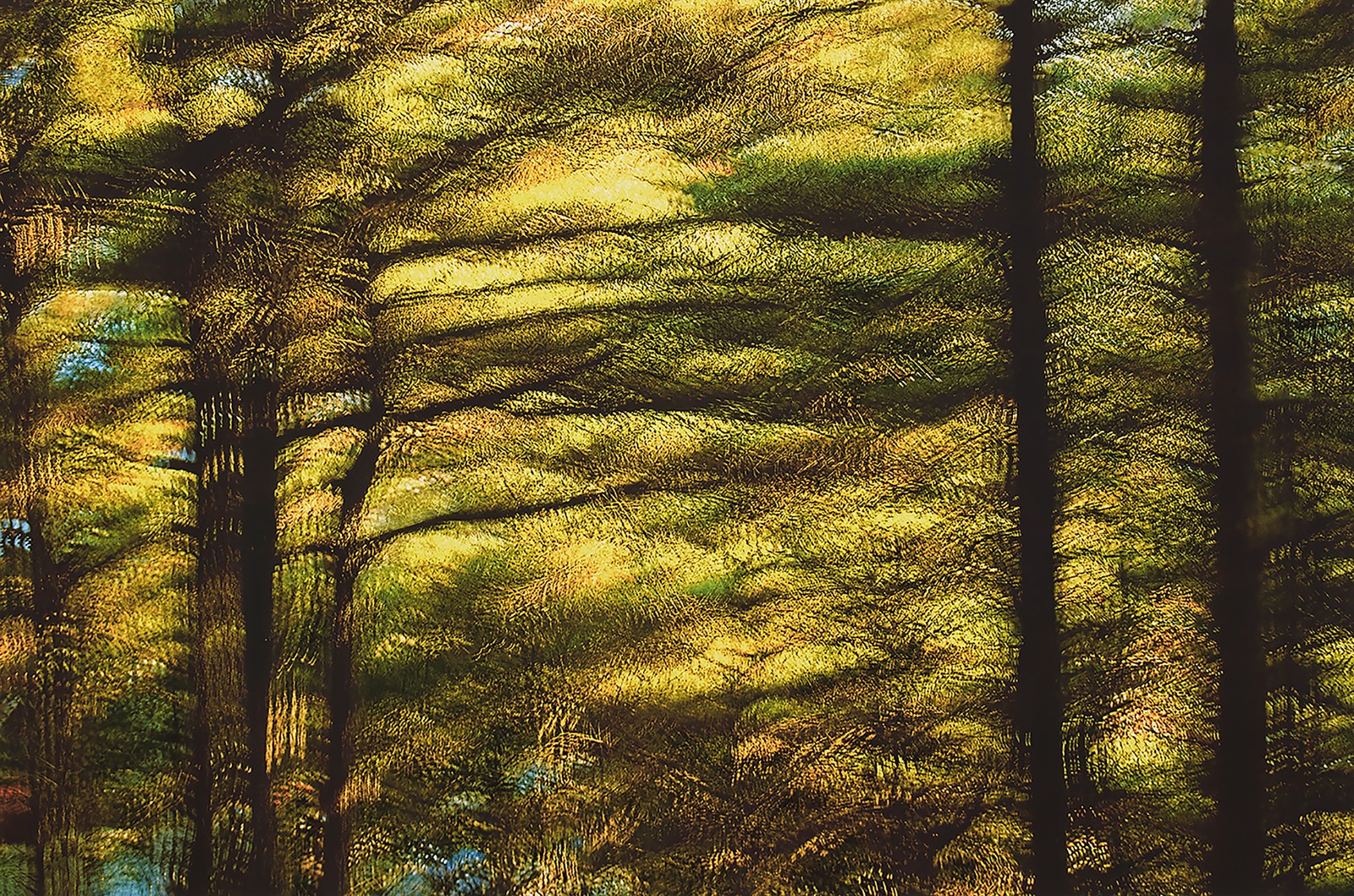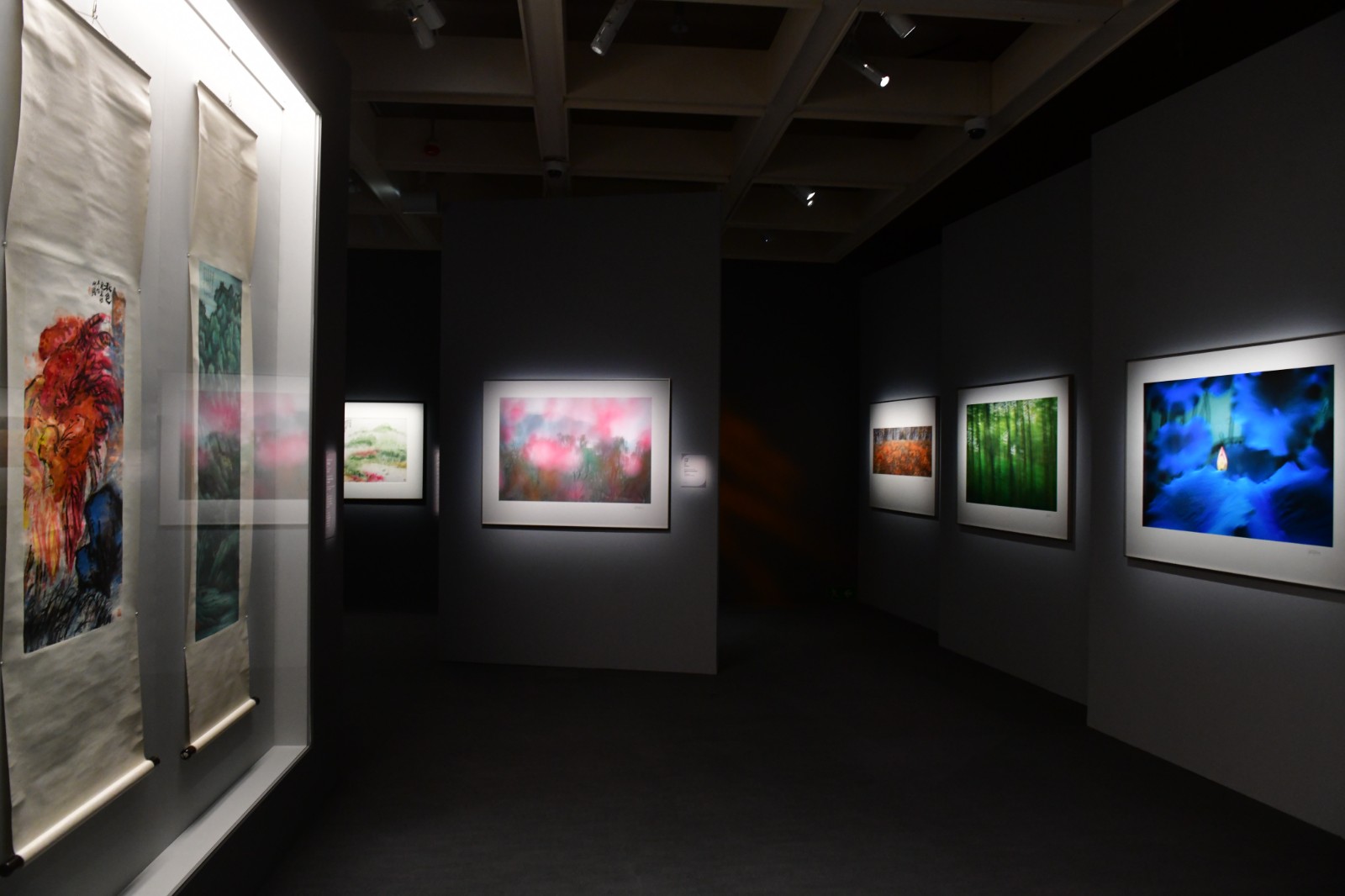 麥館長以展品朱屺瞻的《雪竹》為例解釋:「朱屺瞻筆下的竹子恍如被風吹、被物件砸到,呈現動感。」黃貴權的《松風》拍攝的秋日樹林展示出落葉蕭瑟的美感。此外,朱屺瞻的藝術採用豐富的色彩演繹,以大面積敷染及鮮明強烈的對比設色入畫,朱屺瞻作品中的光色表現啟發黃貴權,令他創作出《待放》,「荷葉通常是綠色,這幅《待放》呈現出藍色。起源於他曾欣賞過朱屺瞻一幅以花青色描繪荷葉的作品,及後一次拍攝中黃貴權看見一片荷葉田恍如一片藍海,充滿了藝術氛圍,於是用長曝光改變正片顏色。」