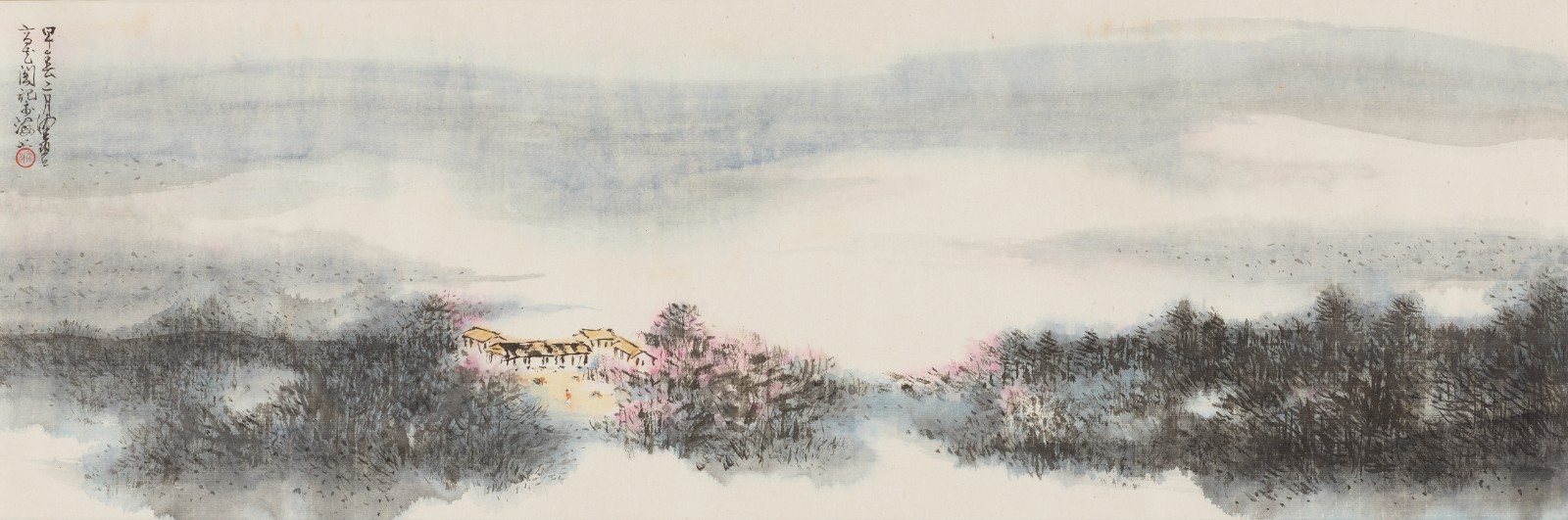 陳佩秋畫作《早春二月圖卷》,1987年。陳佩秋的創作墨彩交融,為黃貴權帶來了創作靈感。