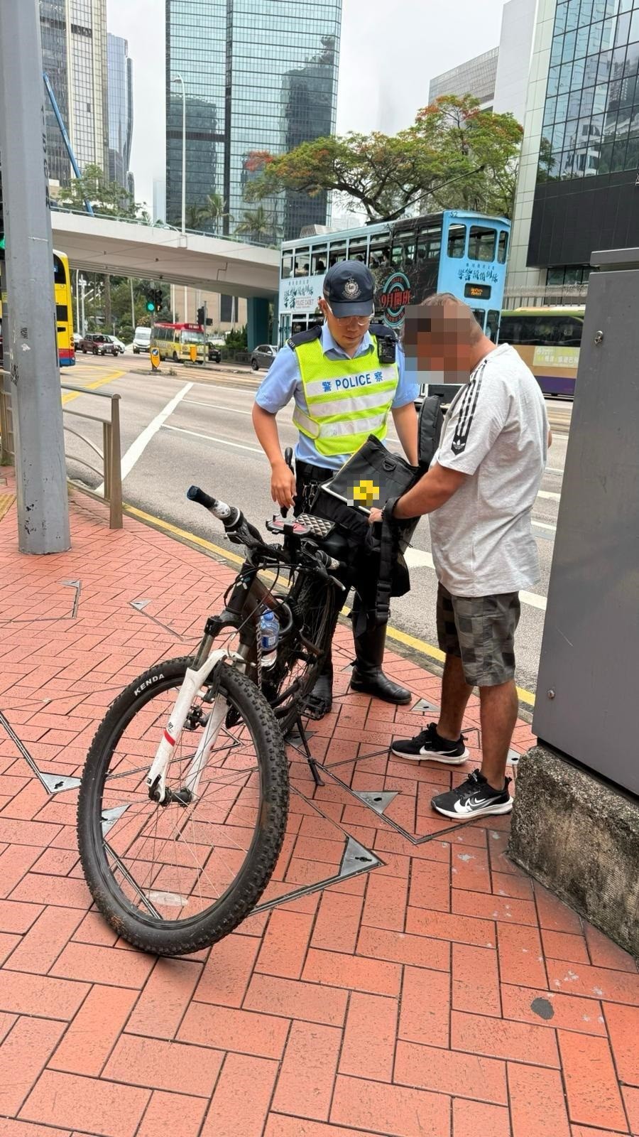 行動中,人員發現一名38歲非華裔男子於道路上駕駛電動可移動工具,以涉嫌「駕駛未有登記車輛」、「駕駛時沒有有效駕駛執照」、「沒有第三者保險而使用車輛」及「駕駛時沒有戴上認可防護頭盔」拘捕該名男子,並扣查一部電動單車。被捕人已獲准保釋候查,須於5月下旬向警方報到。