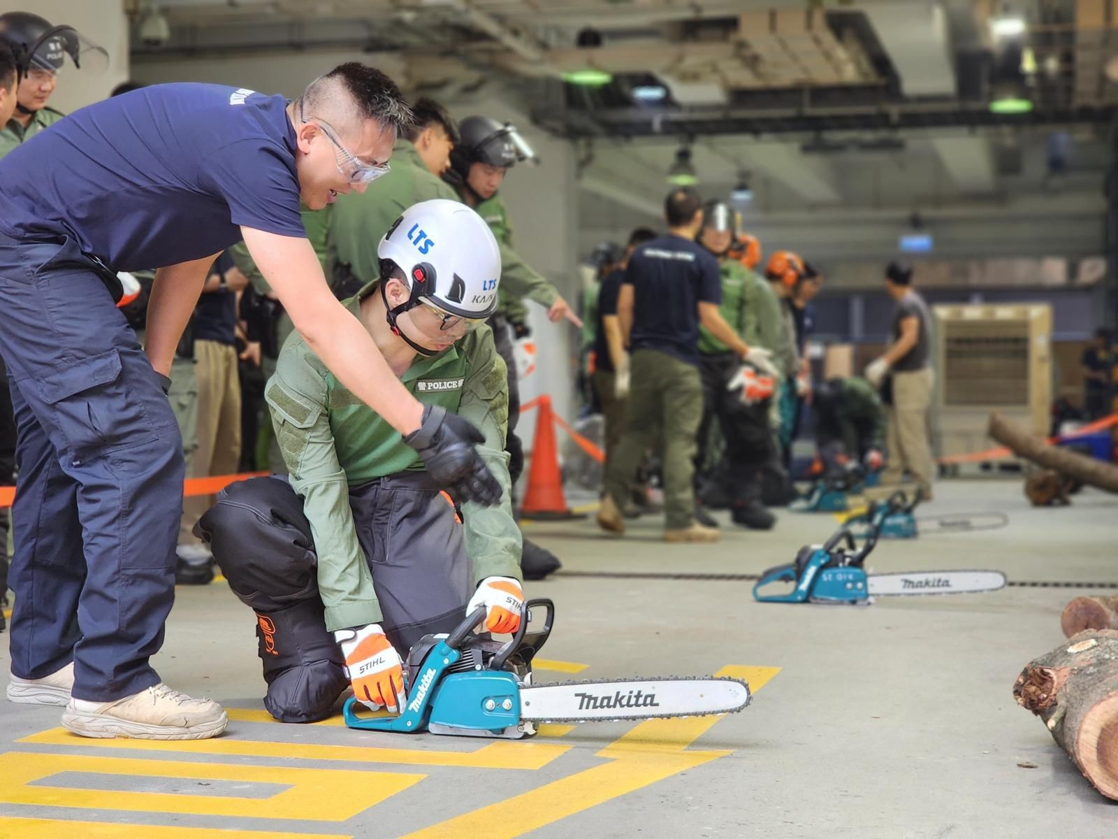 至5月上旬警方新界南總區衝鋒隊為總區人員重新檢視防災裝備及提供應用訓練,包括複習培訓鏈鋸專隊,藉此提升人員處理塌樹的行動效能以及人員執勤的安全性。