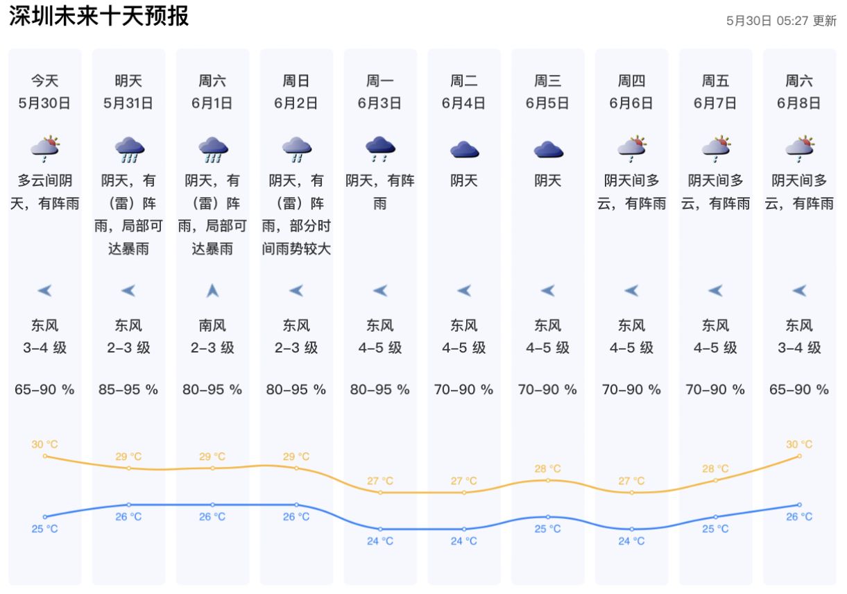 「龍舟水」持續發威,未來幾天深圳的天氣是→