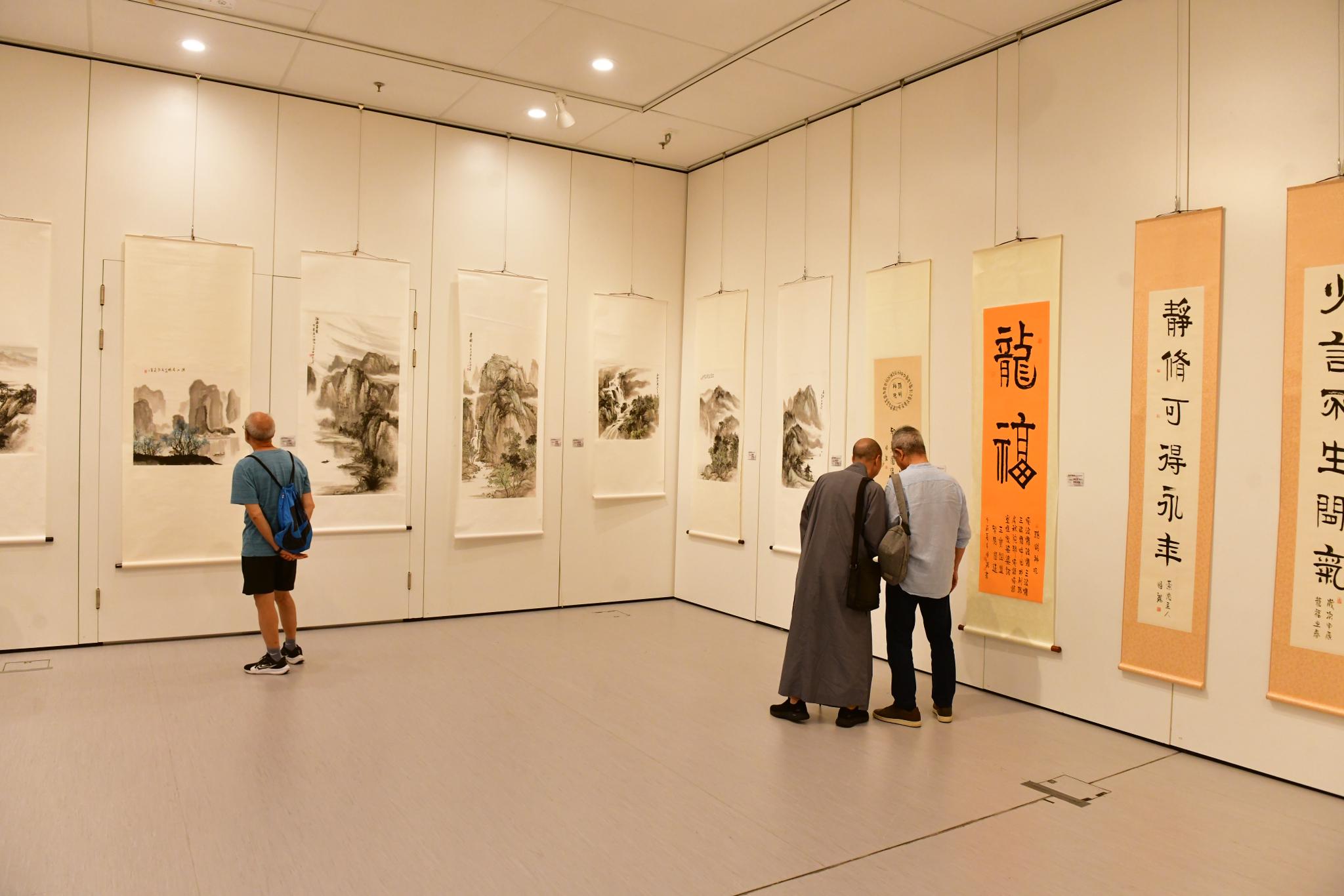 展覽現場眾多藝術愛好者駐足觀賞名家畫作。