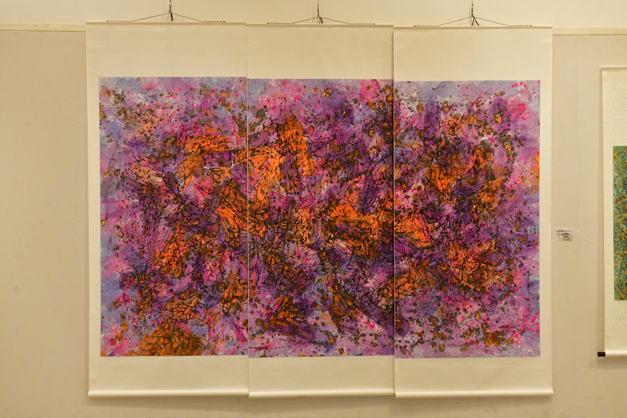 上海畫家徐茂平的風景畫與寫實派的畫風不同, 渾然天成的筆觸和大膽的色彩運用呈現出前衛的抽象派視覺效果,其畫的氣韻和能量令觀者感受到藝術不斷創新下帶來的魅力,正如上海這座城市所展現的蓬勃生命力。徐茂平接受香港商報記者採訪時表示,「抽象的畫風是在不斷實踐後積累的經驗中和持續突破自我的創作狀態中無意形成的,這是迸發而來的靈感。」他的腦海裏沒有想過要刻畫抽象的風格,只是在將物體打碎重組的過程中憑感覺作畫,無意中打開了個人風格的大門。徐茂平認為畫畫講究感覺,須保持創作的連續性,「在畫抽象畫作之前,即使我很忙也會堅持每日用B4大小的紙作畫,用蠟筆隨便塗畫,為的就是保持這種感覺,畫了幾百幅後便有了這樣突如其來的靈感。」從小幅的畫到大幅,在西方藝術的影響之下,徐茂平提煉中國傳統元素進行創新。是次展出的畫作《抽象》,以三連畫的大幅畫作給觀者帶來富有生命力的視覺衝擊,引發無限遐想。(記者:謝謹伊,攝影:崔俊良)