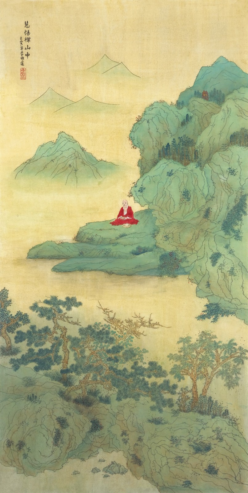 是次展覽展示的100幅國畫分為三個部分,第一部分是紅衣羅漢在綠水青山中禪修;第二部分畫家曾經寫過24節氣詩歌,是次將24節氣圖用花卉去表現,以繪畫花卉的方式創作;第三部分描繪荷花的禪修模樣,每幅荷花圖的名稱均帶有「禪」字。李牧遙介紹:「紅衣羅漢禪修系列用了傳統的工筆手法繪畫,同時加入了寫意體現情感主題。24節氣花卉和荷花系列運用工筆繪畫造型,卻使用油畫中印象派技法繪畫,多了些個人化和情感化的表達。」她表示,展品在傳統繪畫的基礎上加入不少創新元素,包括其個人情感釋放。觀者不妨從李牧遙的工筆青綠山水畫作中,感受她內心的禪意。 (記者:Janice)