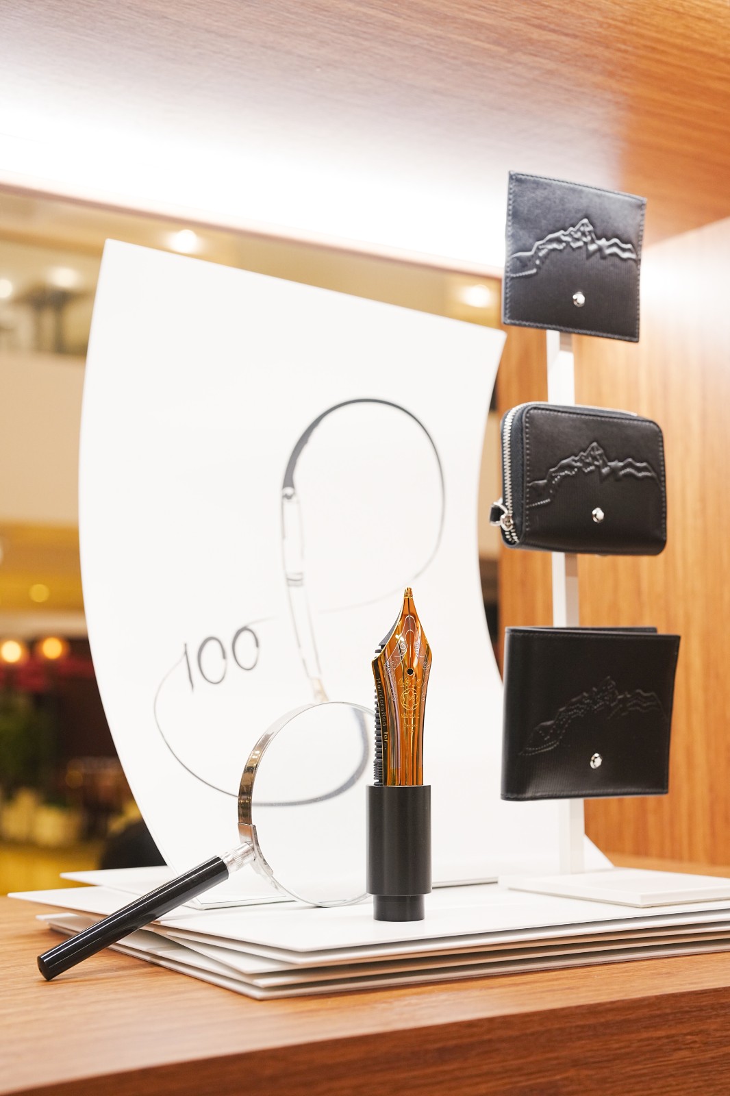 期間限定店重現短片中出現的雪山木屋,內部裝飾採用中世紀現代家具,與木質主調相得益彰,營造精緻而舒適的氛圍。設有特色圖書區、咖啡店及書寫枱,讓賓客一邊享受咖啡,一邊沉浸於書本世界。木屋設計強調透明度,與周圍環境無縫融合,吸引參與者探索。店內擺放一座高近 3 米的巨型 Meisterstück 模型,以紀念書寫工具誕生百周年。顧客可探索The Origin 系列、皮革系列、百周年別注系列及 Star Legacy Nicolas Rieussec 計時腕表大班系列 100 周年限量版等作品。