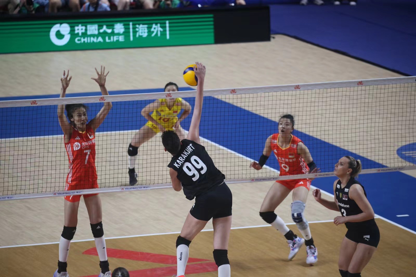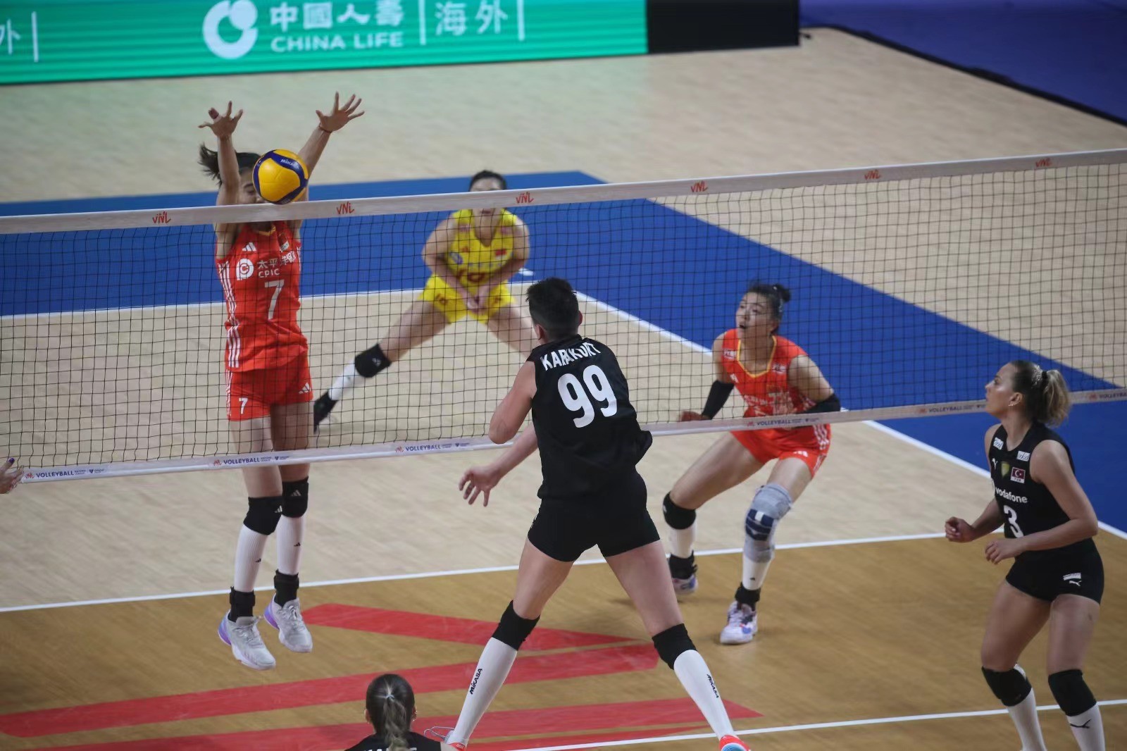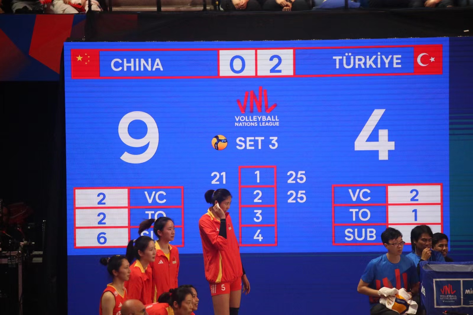 兩軍第一局爭持激烈,土耳其於末段接連得分,以25比21拿下第1局。中國女排第二局演出未如理想,以17比25再輸一局。來到第三局,中國女排開賽極具威勢,一度領先5比0奠定優勢,土耳其於最後一分發球失誤,中國女排贏25比21,總局數追成1比2。第四局,中國女排持續氣勢,於中段領先13比10,最後直領到底贏25比23,追成2比2平手。