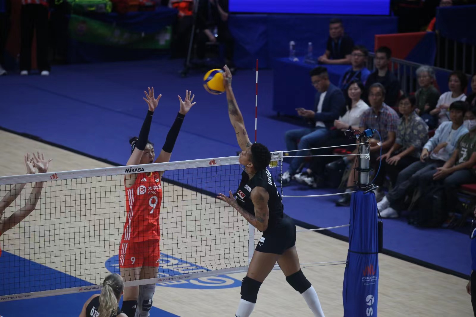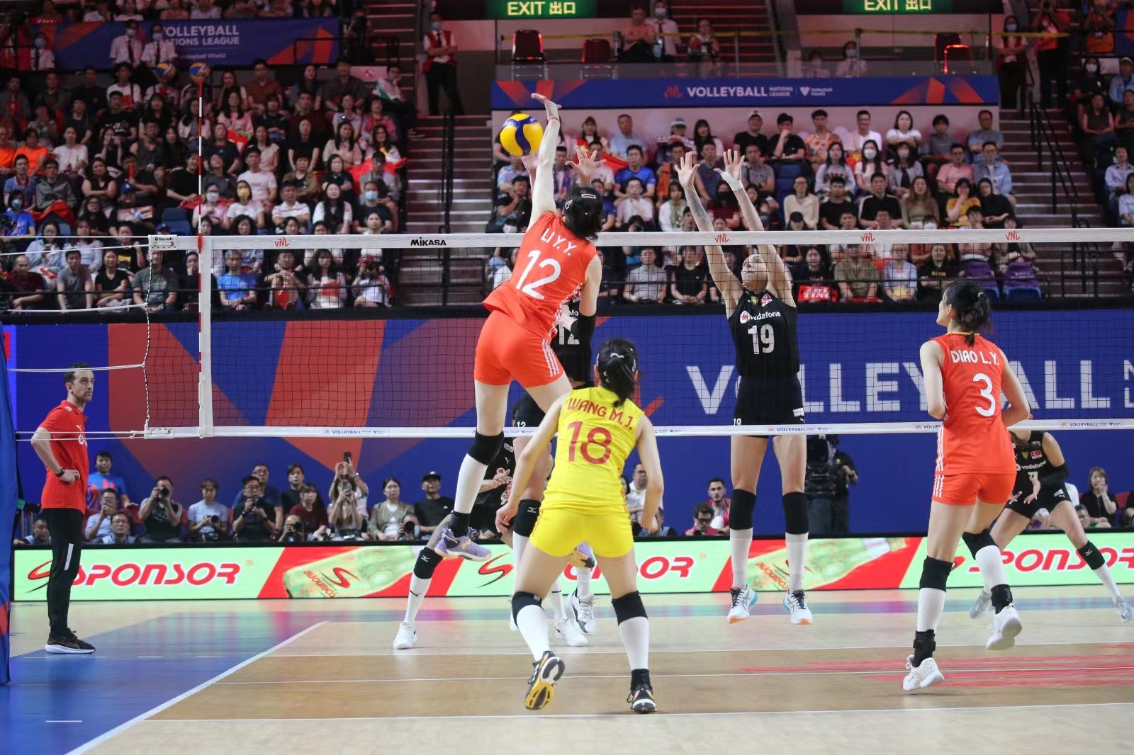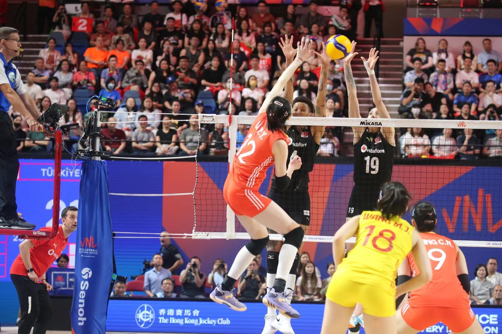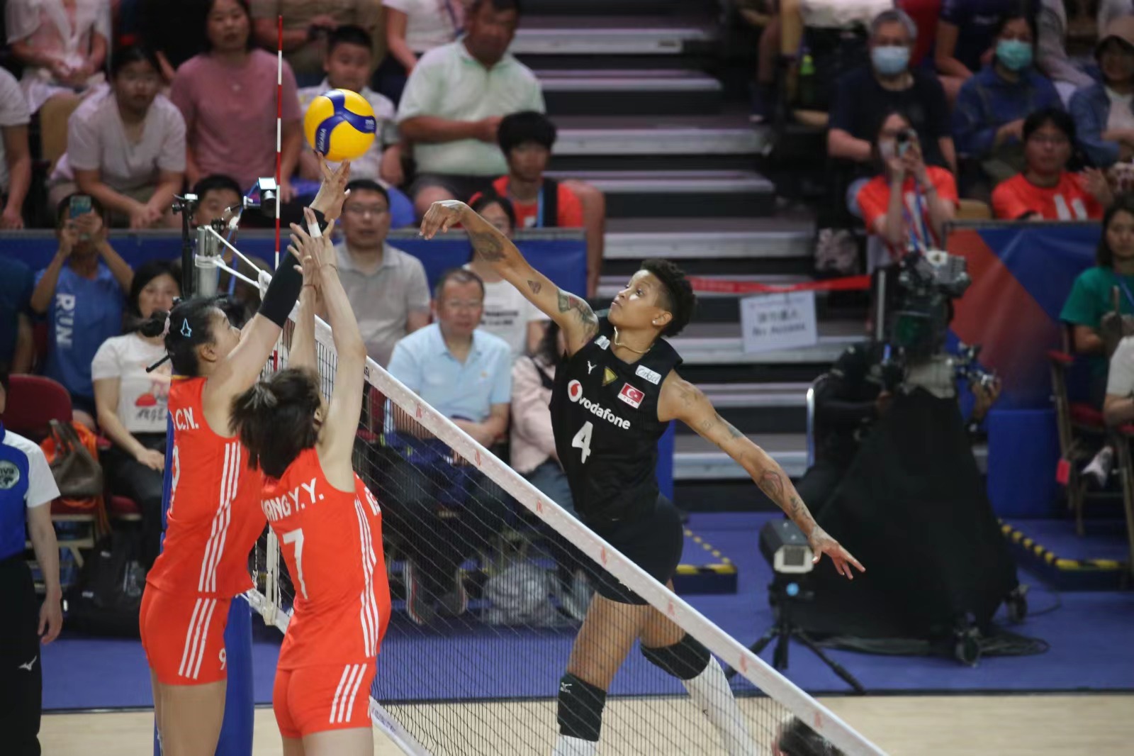 兩軍第一局爭持激烈,土耳其於末段接連得分,以25比21拿下第1局。中國女排第二局演出未如理想,以17比25再輸一局。來到第三局,中國女排開賽極具威勢,一度領先5比0奠定優勢,土耳其於最後一分發球失誤,中國女排贏25比21,總局數追成1比2。第四局,中國女排持續氣勢,於中段領先13比10,最後直領到底贏25比23,追成2比2平手。