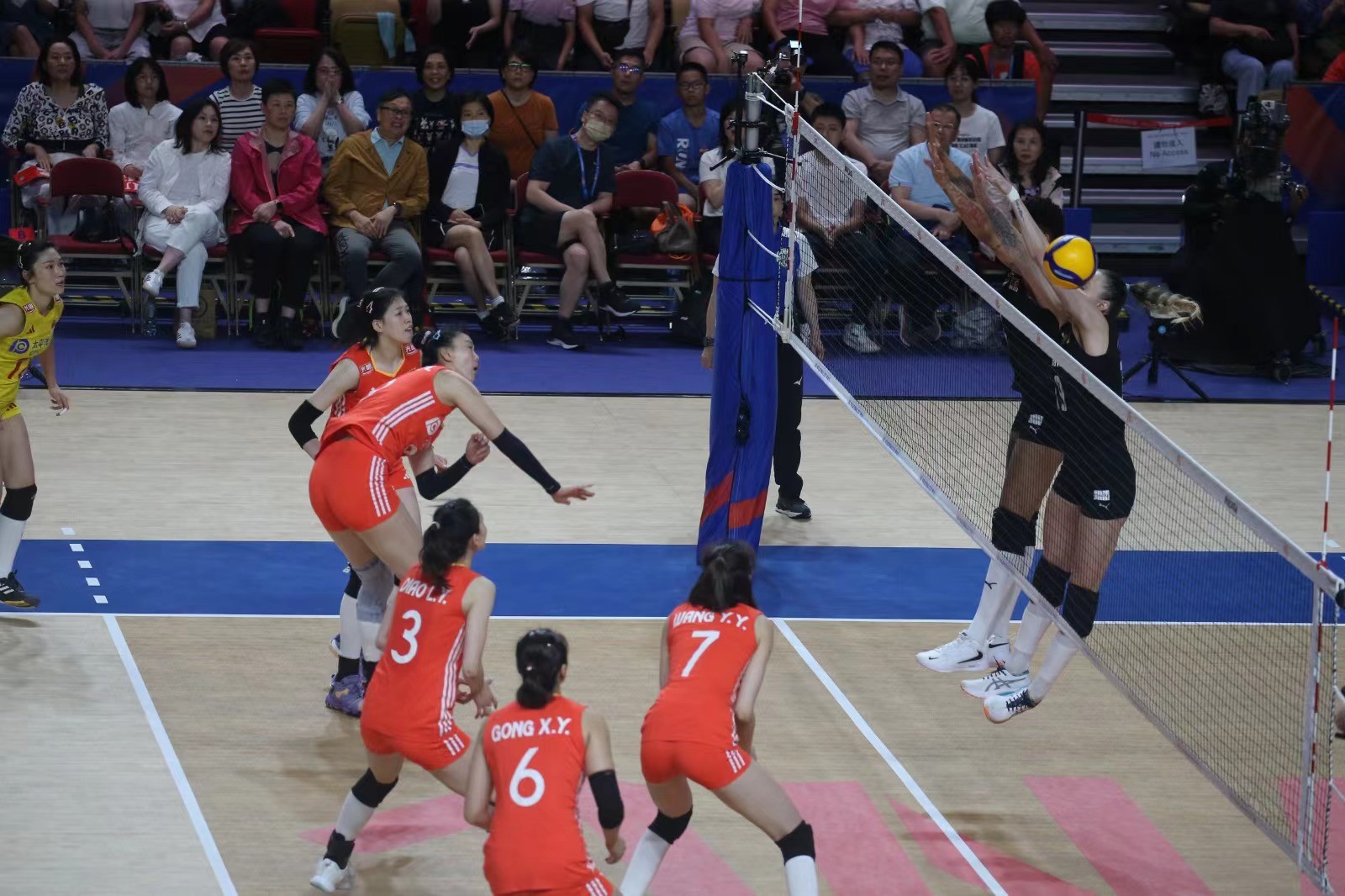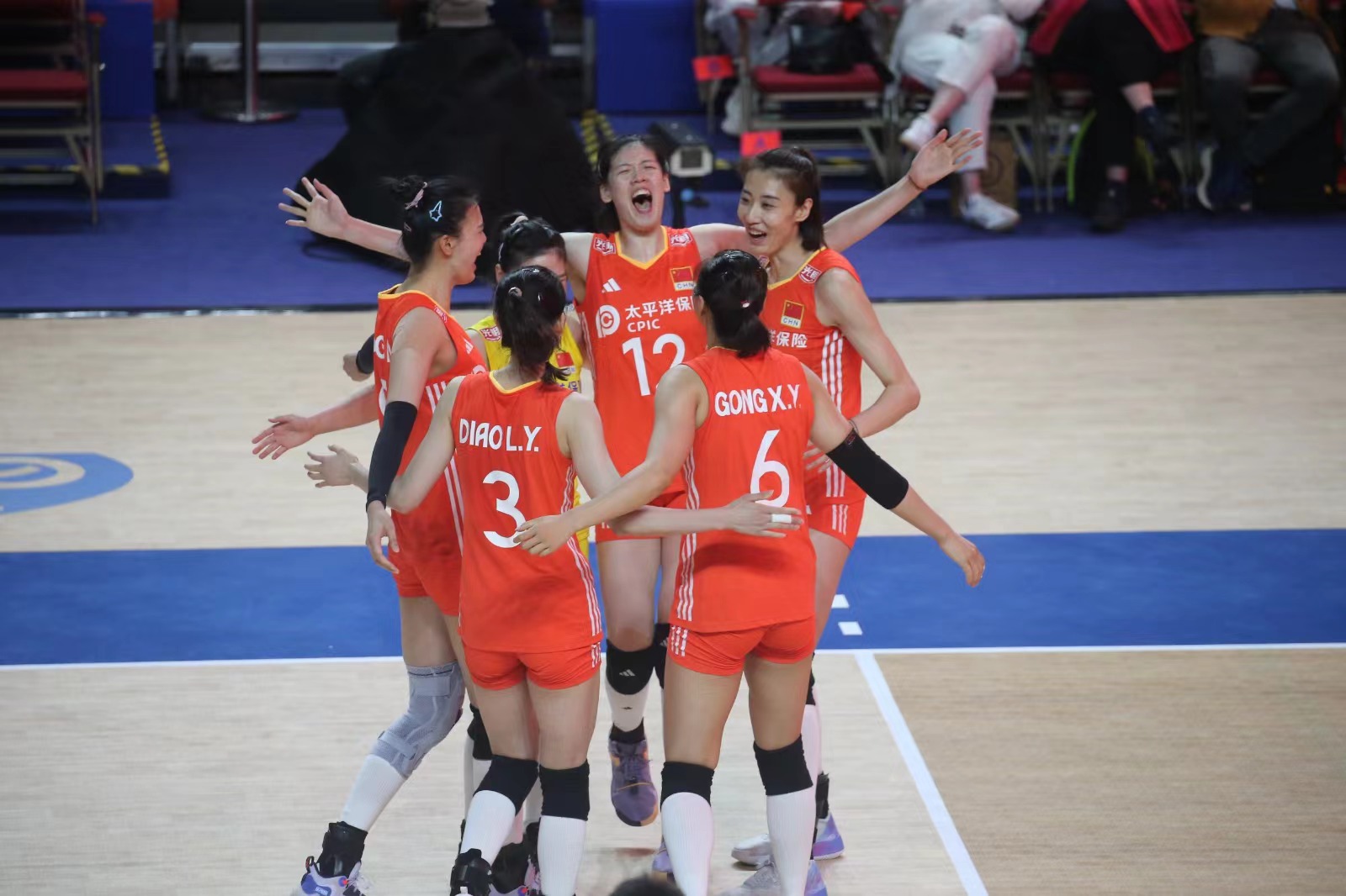 中國女排正選陣容有袁心玥、李盈瑩、吳夢潔、王媛媛、龔翔宇、刁琳宇及王夢潔,朱婷有傷在身未有上陣。