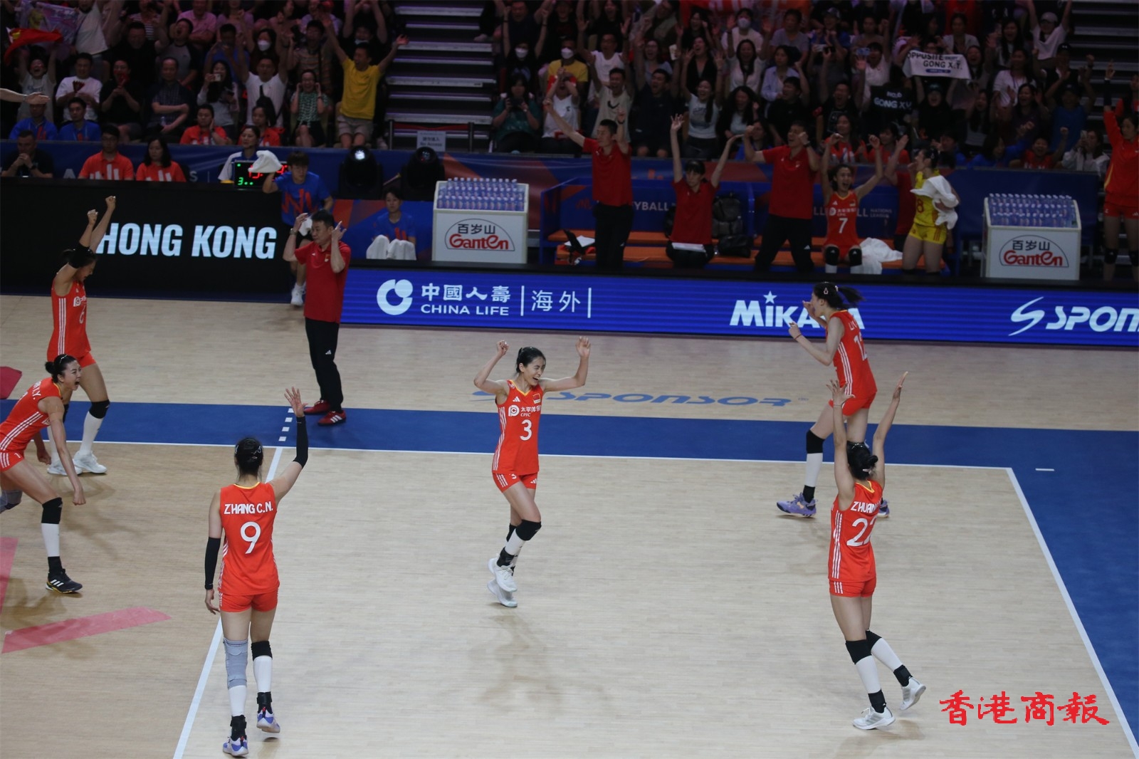 「世界女排聯賽(VNL)香港站」第5日賽事周六(15日)舉行,中國女排於晚上壓軸戲主場迎戰土耳其,在破賽會紀錄有10542人入場下,打出近年最出色一仗,最終以3比2反敗為勝,於香港站連贏3場,確定出線世界女排聯賽總決賽。