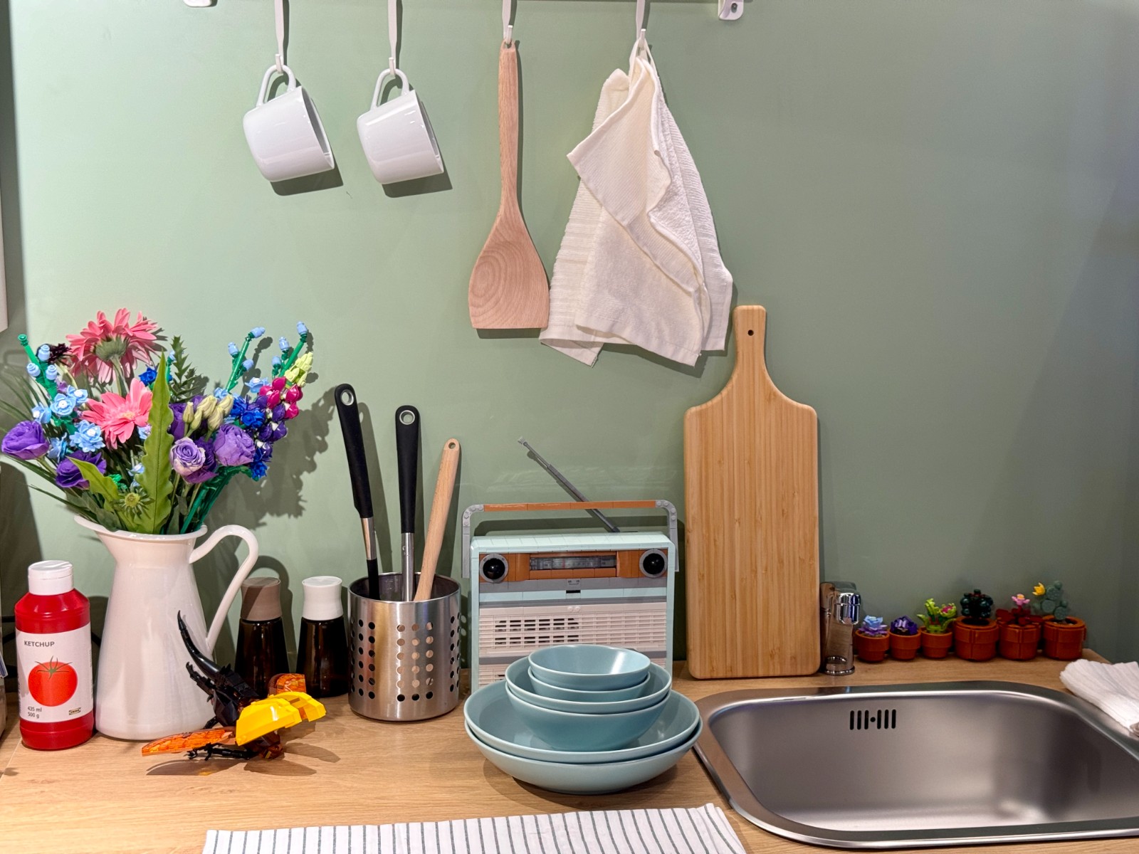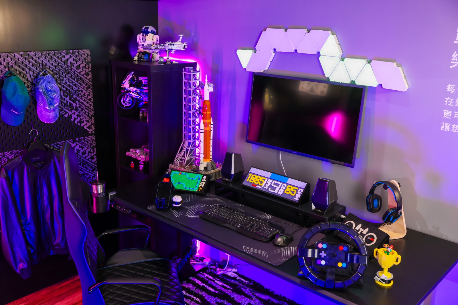 第二空間是一個開放式的廚房及餐廳,創造一個充滿生氣和自然氣息的用餐環境。空間中點綴了Icons系列花束和Art系列的神奈川沖浪裡等裝飾品。設計師還打造了一盞花卉吊燈,彷彿在餐桌上方創造了一個空中花園,為普通的吊燈帶來生命力。餐桌上展示由拼砌達人設計的LEGO麵包車餐巾收納和油站調味瓶,將拼砌元素融入日常生活中。最後一個空間是充滿科幻電競元素的房間,適合熱愛星際大戰和賽車風格的男生。該空間中收藏了包括Star Wars、Millennium Falcon等系列模型,讓居住者可以隨時沉浸在自己的興趣和愛好中,展現出個人的獨特品味。