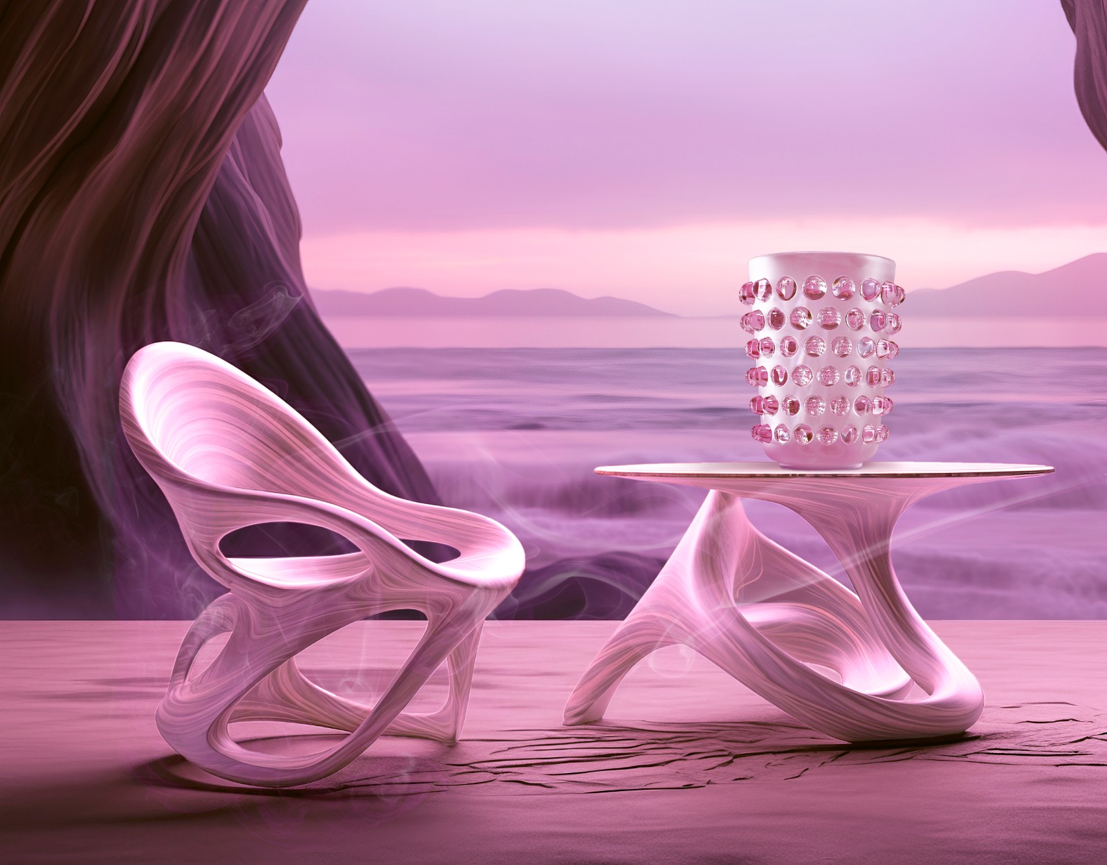 水晶擺件的精緻工藝和美感使其成為家居裝飾中的藝術佳品。LALIQUE 推出全新 Iconics 'Rose Nebula'「粉紅的萊儷」系列,靈感來自古希臘語的 Nephele。系列作品以人工智能創建的未來主義建築為背景,模糊了真實與虛擬的界線,探索了想像世界。