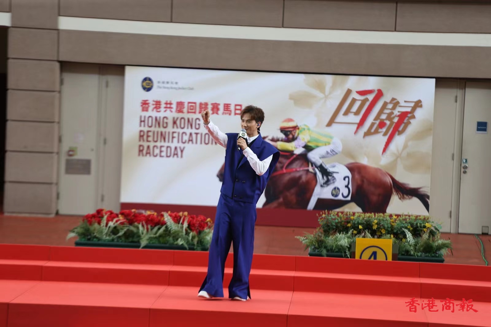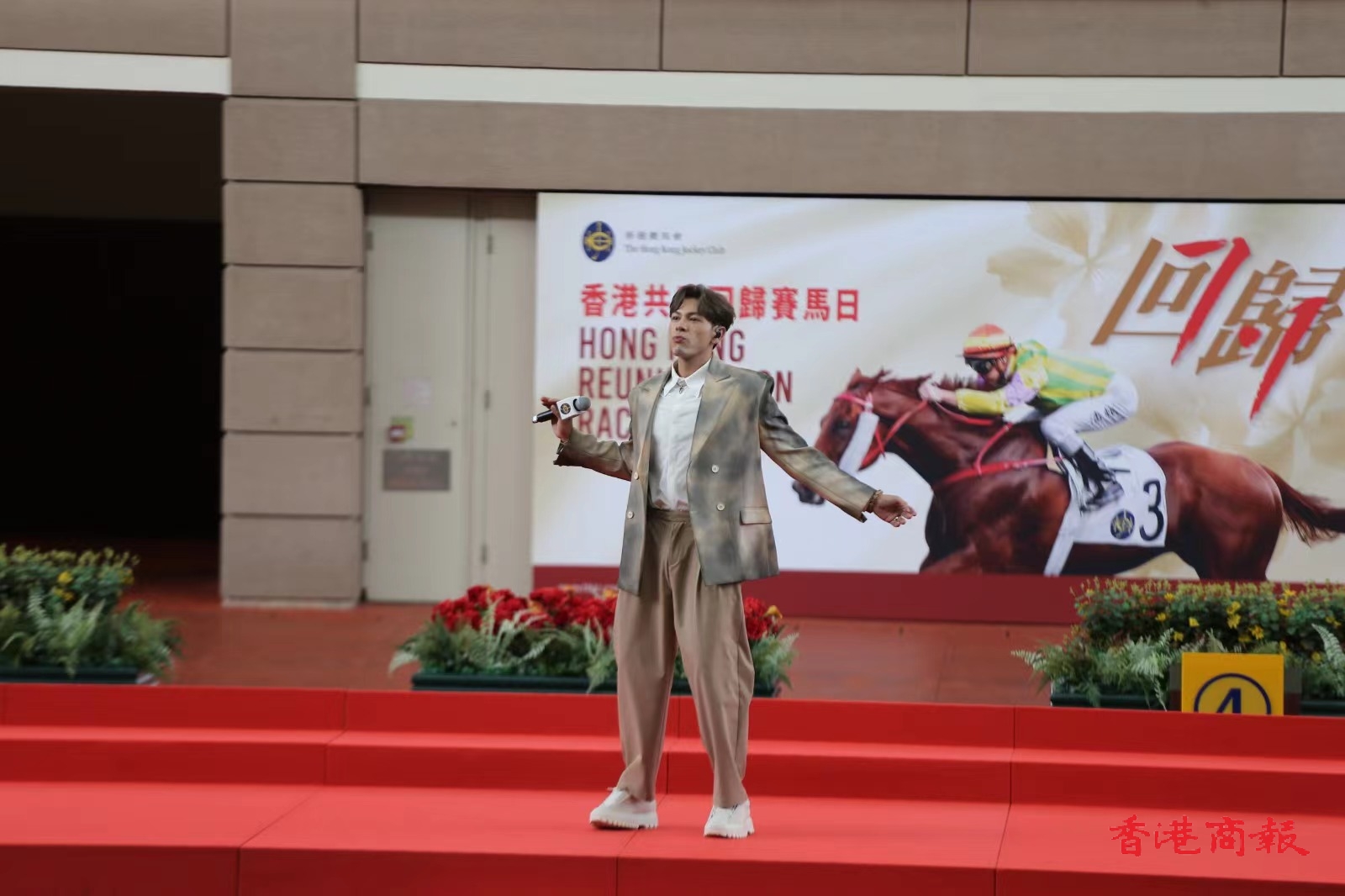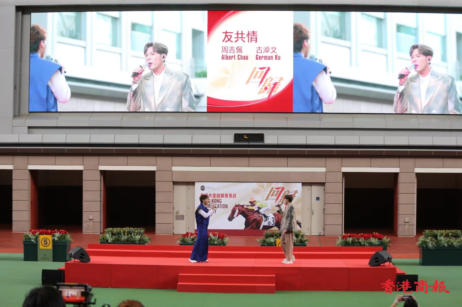 「香港共慶回歸賽馬日」今日(1日)在沙田馬場舉行,馬會特別邀請「中年好聲音」兩位冠軍歌手周吉佩、古淖文在賽前擔任表演嘉賓。