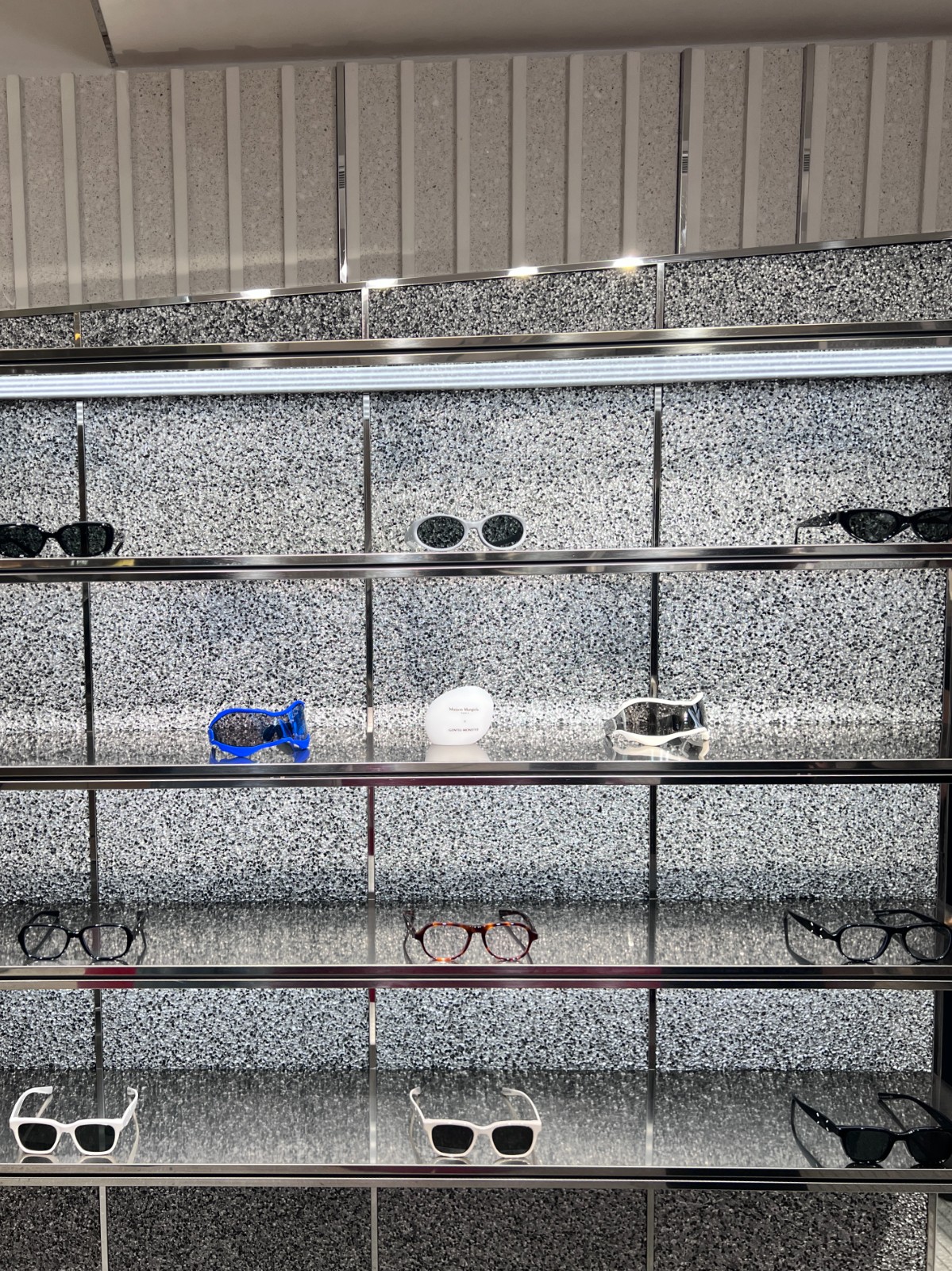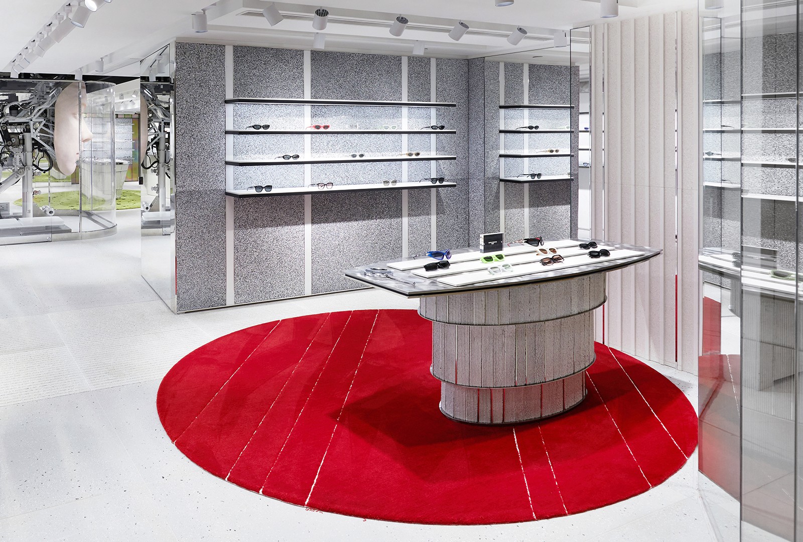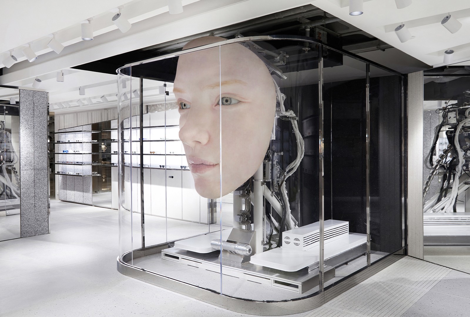 新店除了呈現經典款眼鏡外,還有與設計前衛怪誕品牌Maison Margiela的聯乘系列、光學系列「GENTLE HIGH SCHOOL」、JENTLE SALON系列。門店中央佇立了巨型動態裝置「THE GIANT」,由品牌的機器人實驗室用一年時間創製,巨型的機器人臉部神情十分像真,營造出微妙的先鋒感和科技感,啟發觀看者對於人類與機器人未來關係的深度思考。