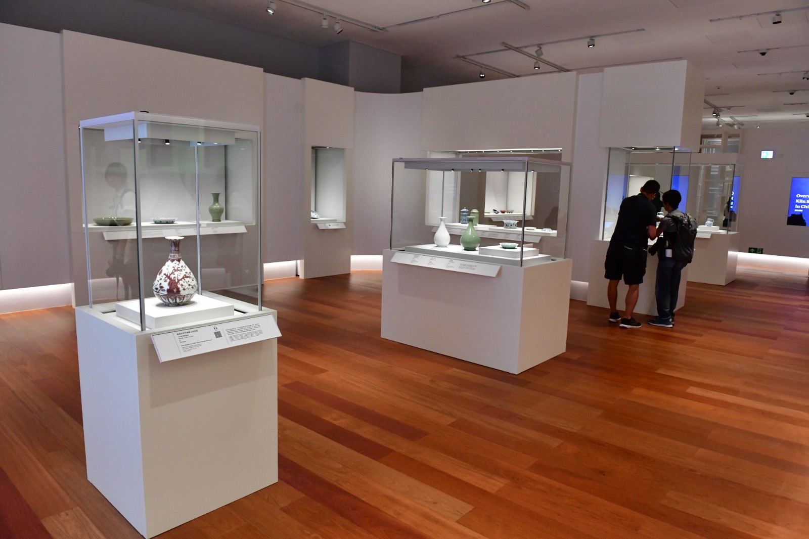 展覽按歷史順序策劃,能欣賞到明代早期、中期各具特色的瓷器,還能看到明代晚期燒製難度更大的大型瓷器及五彩瓷器。如香港故宮文化博物館藏品「青花龍穿花紋出戟花觚」,燒製於萬曆年間(1573-1620年),瓷器的外形修長,腹部鼓出,頸部有一對獸耳,腹部至底部伸出六條扉棱,裝飾繁瑣,且紋飾複雜,黃煒均稱由於體積巨大,較難燒成,因此瓷器出現了歪斜的情況。