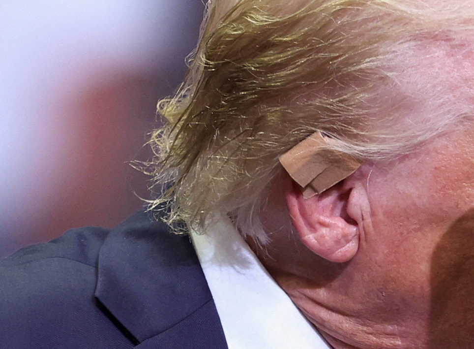 支持者包紮右耳聲援特朗普