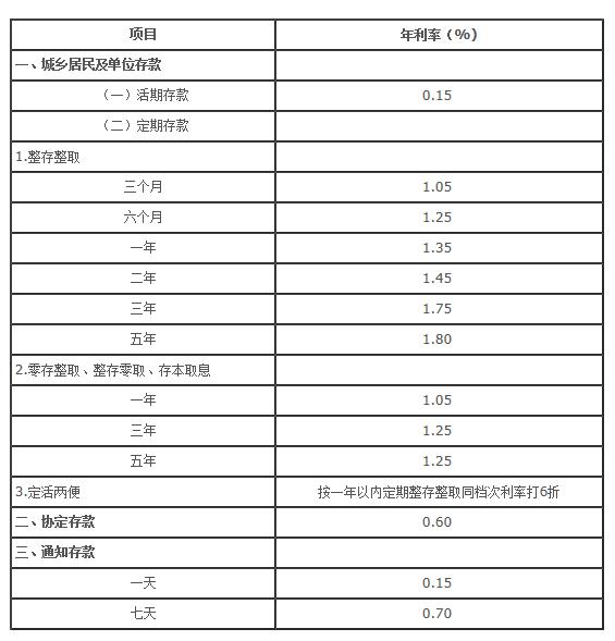 7月25日,中國多家國有大行宣布下調存款利率,其中,建設銀行、中國銀行活期存款利率下調0.05個百分點;整存整取1年期及以下下調0.1個百分點;2年期及以上下調0.2個百分點。零存整取、整存零取、存本取息各期限利率下調0.1個百分點。下調後,一年期、兩年期、三年期和五年期定期存款利率分別為:1.35%、1.45%、1.75%、1.8%。