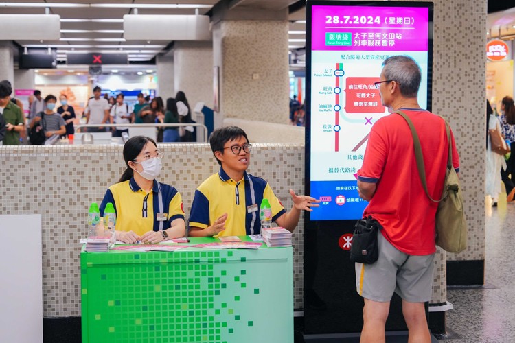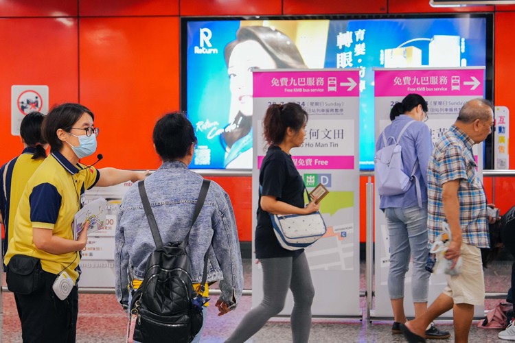 港鐵表示全日動員超過1000名人員在相關車站及巴士站協助乘客,亦於相關車站增加超過2500個乘客資訊及指示牌提醒乘客。(港鐵圖片)