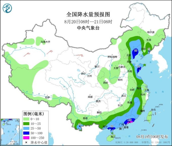 預計明後兩天,強降雨影響區域繼續東移南壓,河北東北部、山東中東部、遼寧西部及華南沿海一帶有暴雨、局地大暴雨,上述地區局部伴有短時強降水、雷暴大風等強對流天氣。