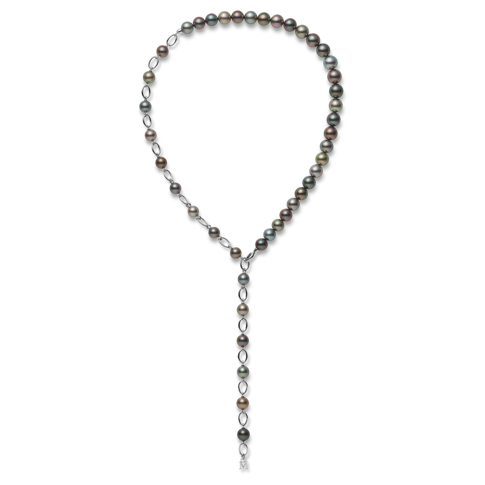 品牌的另一經典系列——M Code,設計靈感來自摩斯密碼,將白金幾何鏈扣與黑南洋珍珠相互交疊,不僅展現珍珠的迷人光澤,還賦予整個設計流動的線條感,令視覺效果富有張力與動感。該系列適合追求獨特風格且講究細節的男士佩戴,既能在正式場合中增添神秘感,又能在日常穿搭中展示個性。