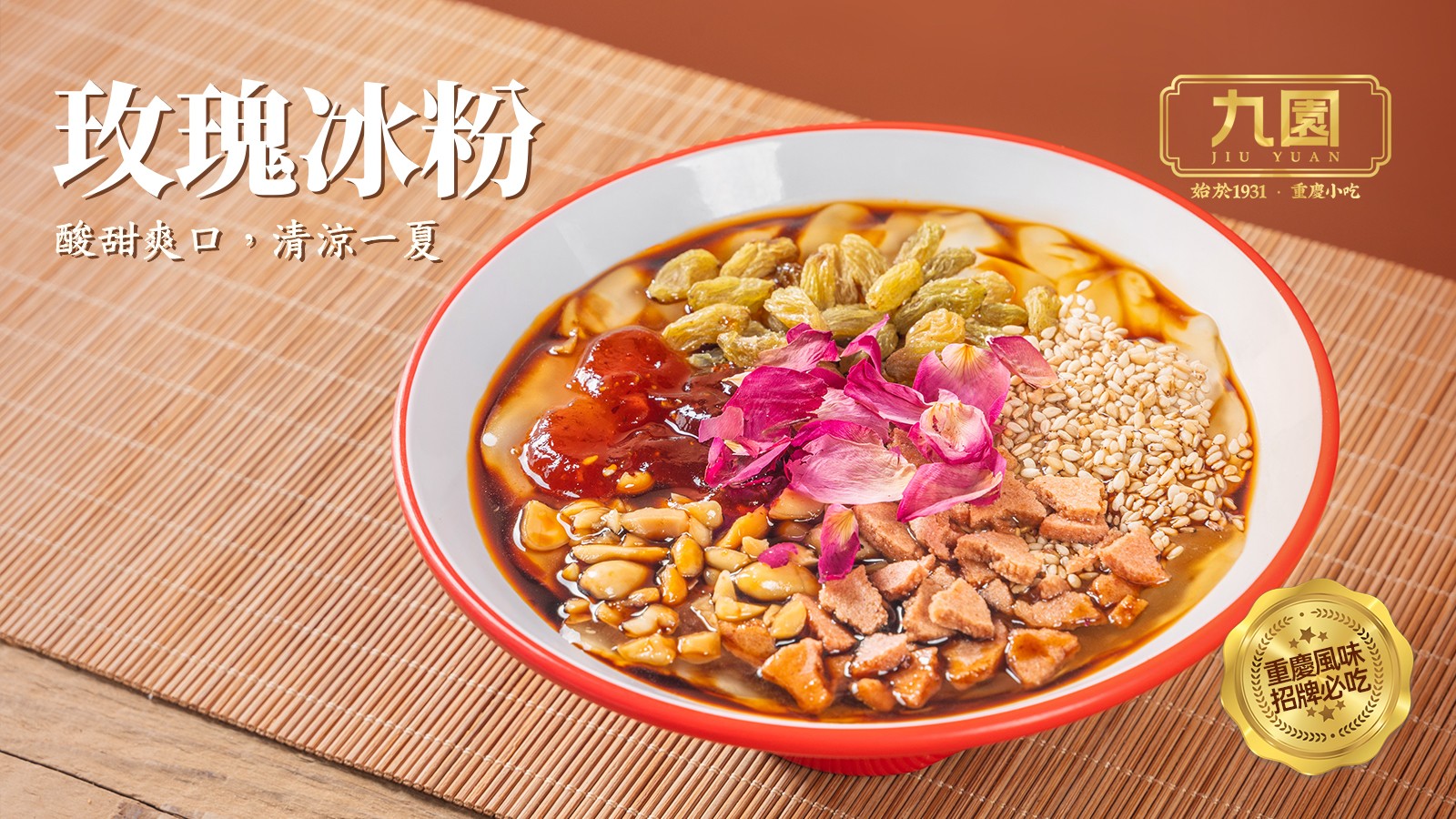 吃重慶小吃必定要試一試特色甜點玫瑰冰粉,冰粉鋪底,加入玫瑰醬,花生碎,山楂碎,葡萄乾等, 調出來的口味甜絲絲,入口冰冰涼涼, 吃過麻辣 重慶菜式,最適合吃上這個冰粉,頓覺分外冰爽。(記者:Katherine)