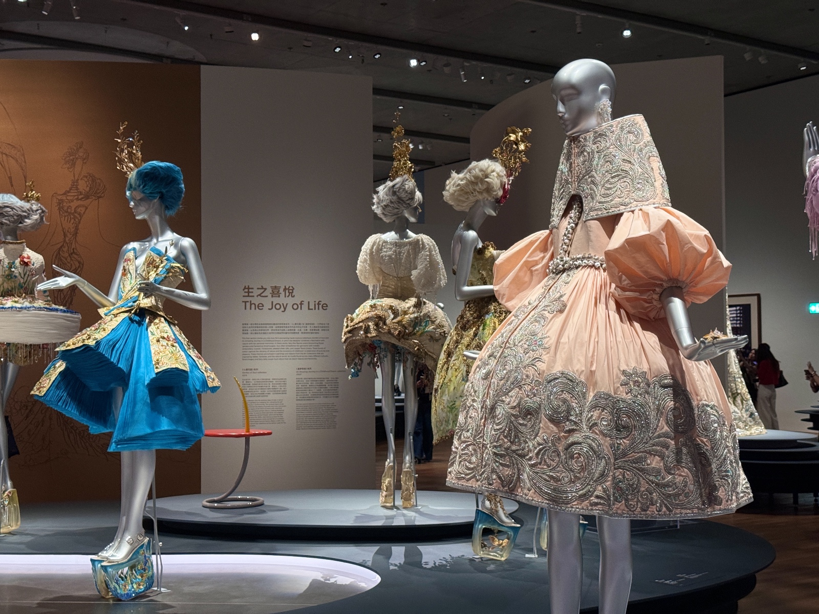 在「生命之悅」主題中,郭培通過《心靈花園》(2015)和《童夢奇緣》(2007)兩個系列為觀眾展現了自然的神奇與童年的純真。她的設計中充滿了仙子般的形象,彷彿帶領我們走入了一個繁花盛放的世外桃源,盡情感受大自然的生命力與夢幻。通過充滿想像力的造型,郭培將她對大自然的熱愛和童年回憶融入時尚設計,帶領觀眾進入一個充滿生機與歡樂的世界。