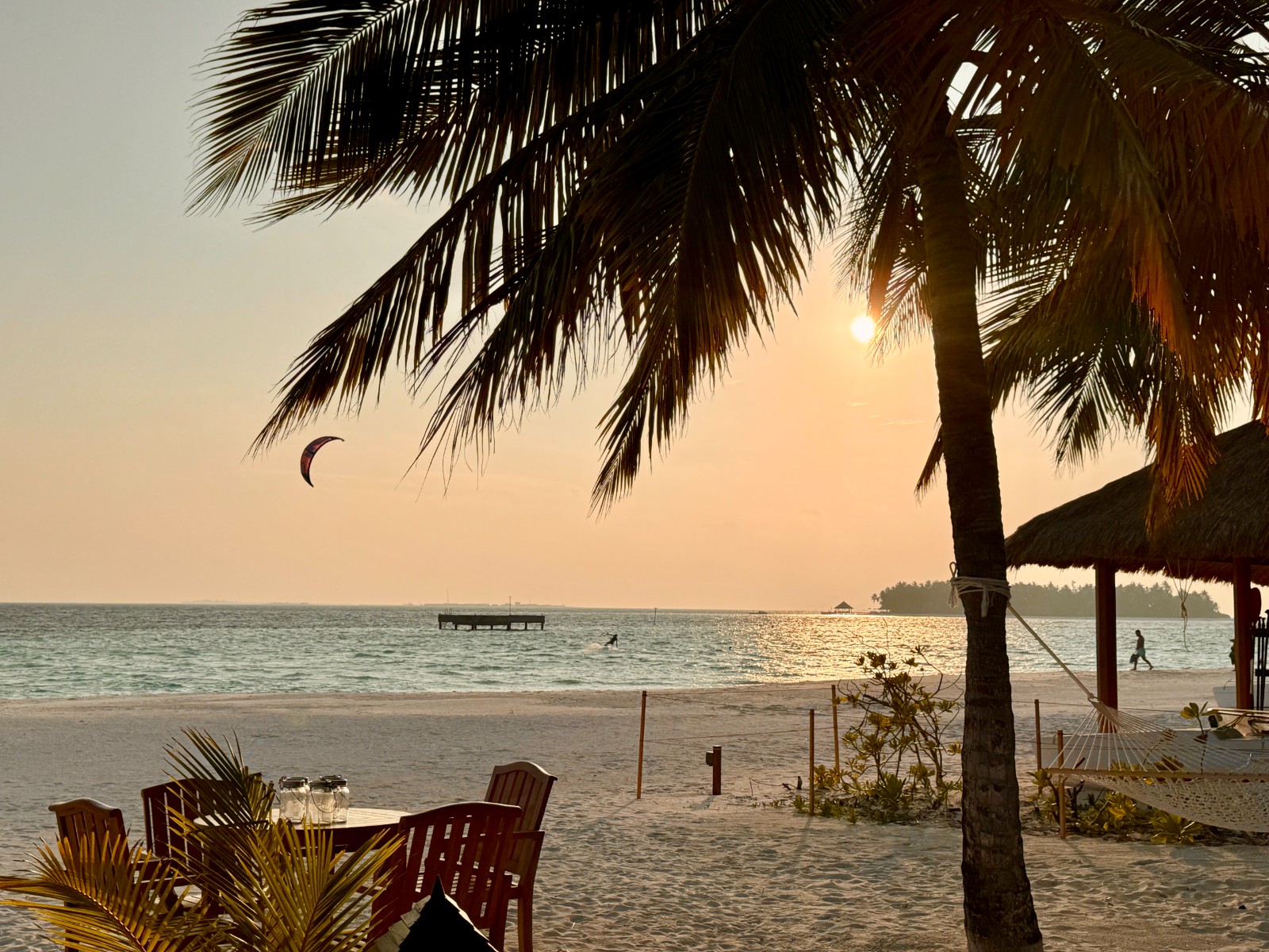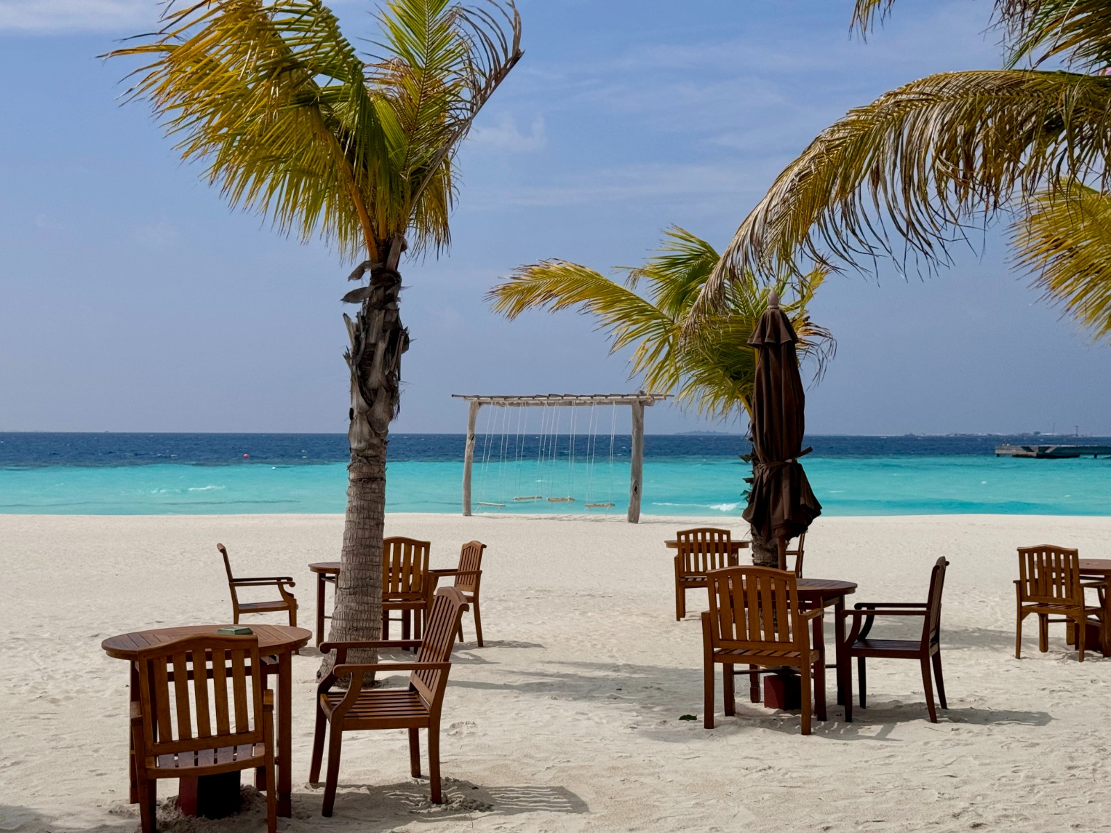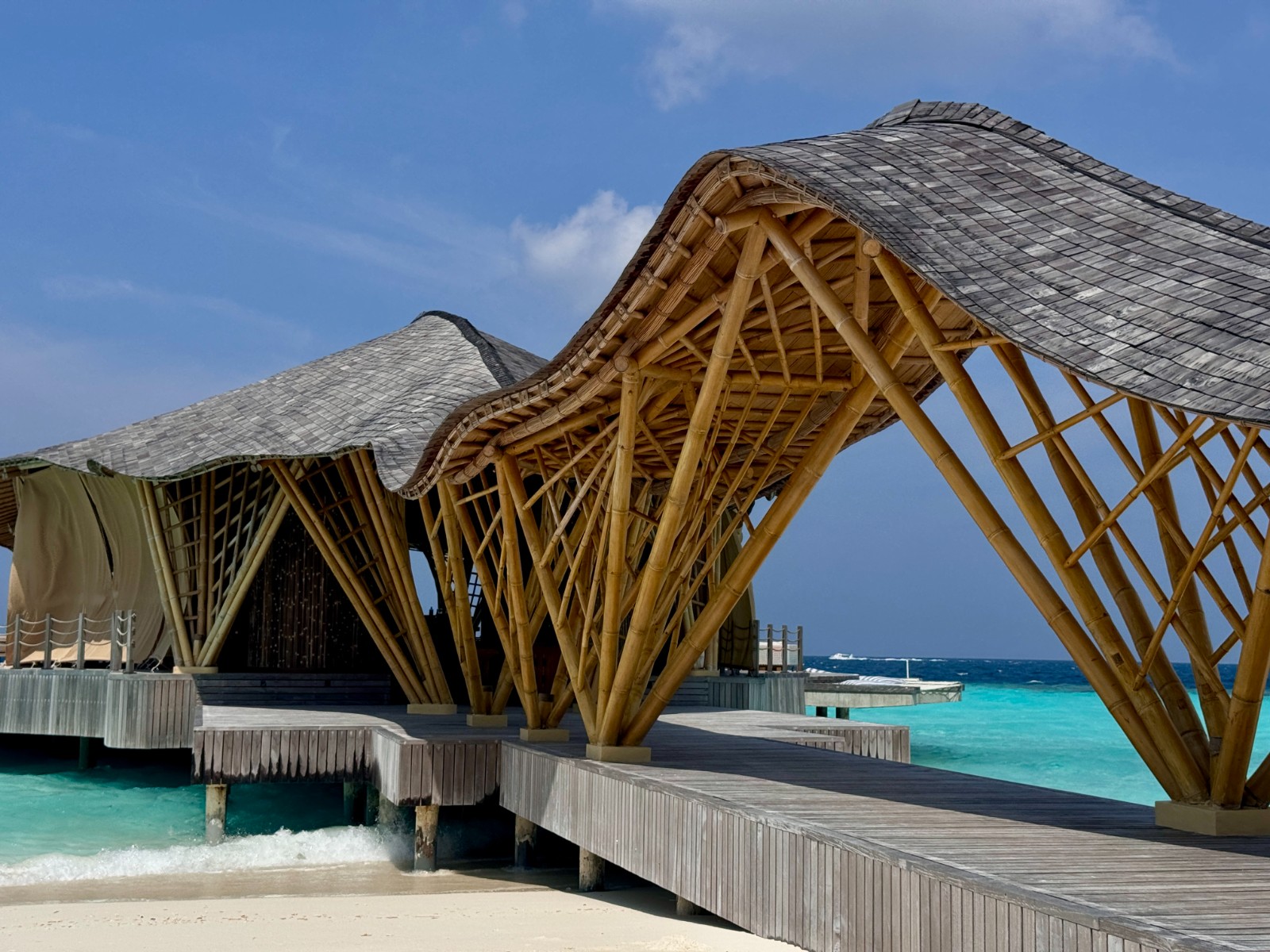 從香港飛抵馬累國際機場後,需乘坐快艇前往目的地。25分鐘的船程中,耳邊是引擎的低鳴,眼前則是無盡的蔚藍。當小島在眼前逐漸清晰,白沙與椰林勾勒出的畫面,像是一張未經修飾的明信片。伴隨着富有節奏感的Bodu Beru(當地傳統舞蹈音樂)鼓聲靠岸,穿過一座廊橋踏入島嶼,在地道的馬爾代夫式歡迎中,旅客通過獨特的「赤腳儀式」,讓雙腳接觸細膩沙灘,卸下舟車勞頓的疲憊。