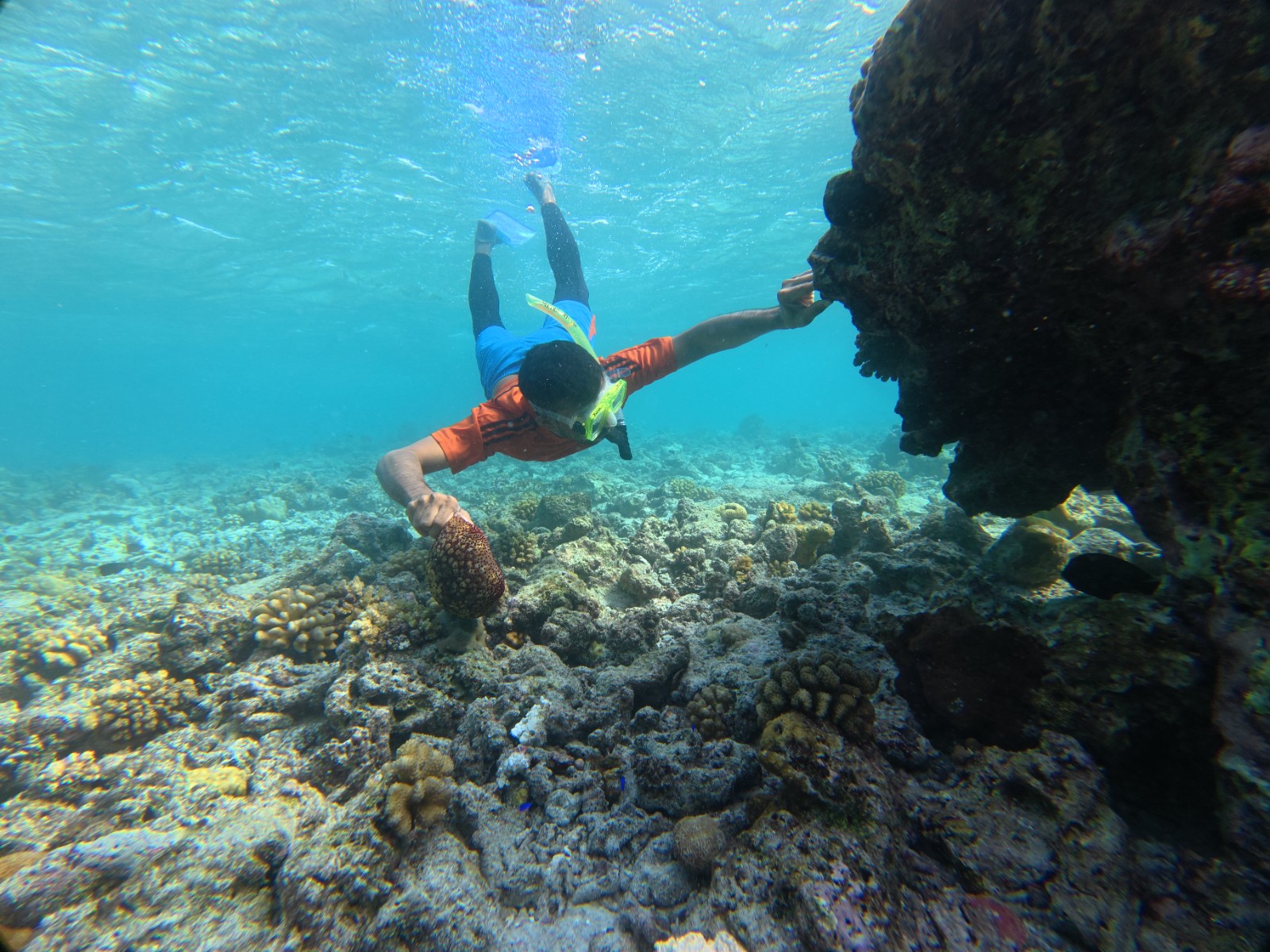 浮潛也是度假村不容錯過的體驗;筆者連同其他酒店住客參與珊瑚礁清理活動,穿戴浮潛裝備潛至保育區,清理專以珊瑚為食的棘冠海星。(圖片由悅榕莊集團提供)